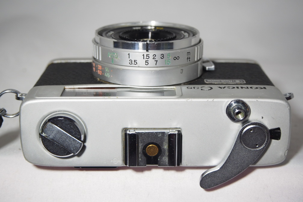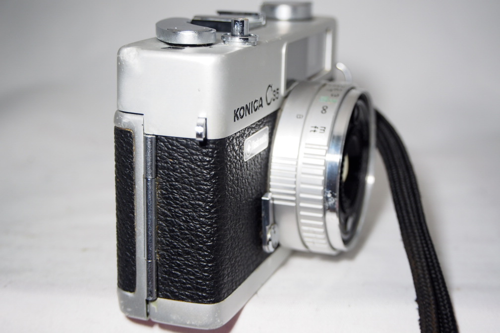 手の平サイズでコンパクト35mmカメラで二重像合致式でピント合わせも確りでき、CDS露出計と電子シャッター搭載の優れものカメラ、コニカC35 Flashmaticです。