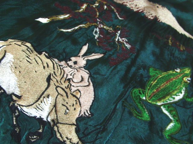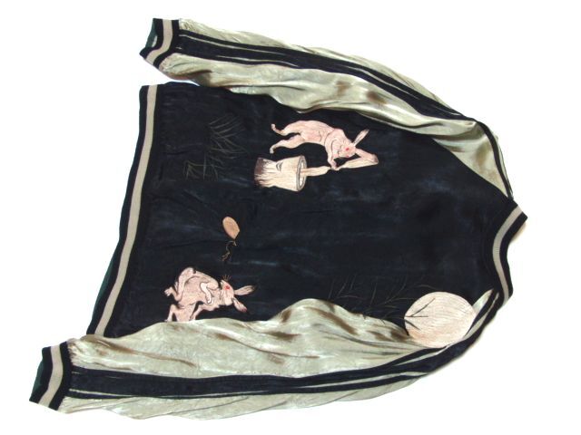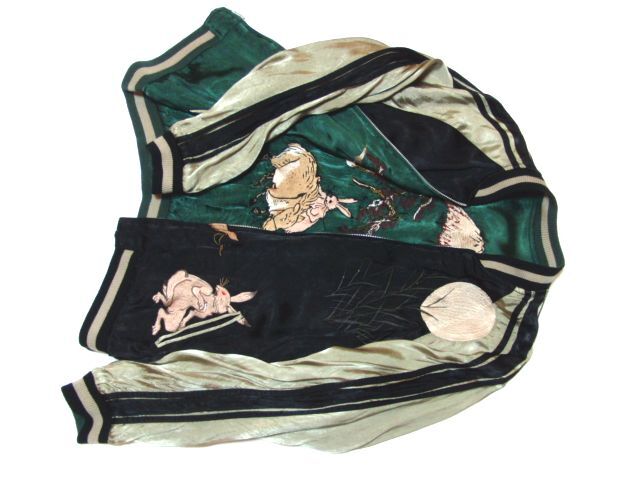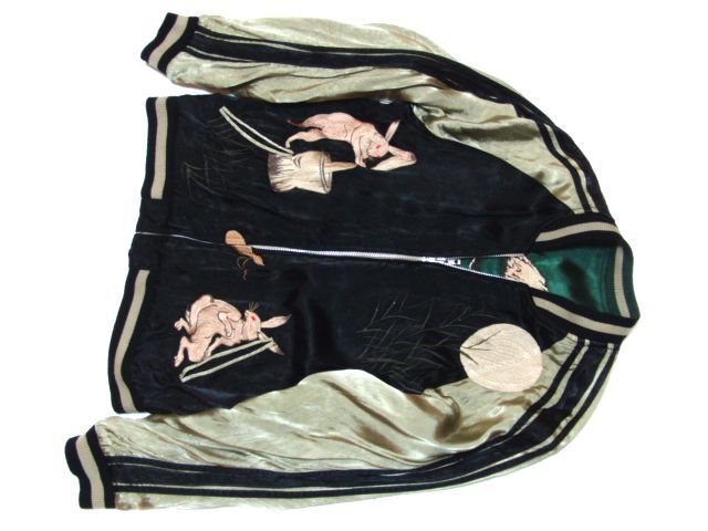 ★即決早勝!!花旅楽団リバーシブル和柄スカジャンL【豪華刺繍】猪兎蛙瓢箪満月スーベニアJKT☆SLOWジップ花鳥風月レーヨン枯山水ヴィンテージ★ | |