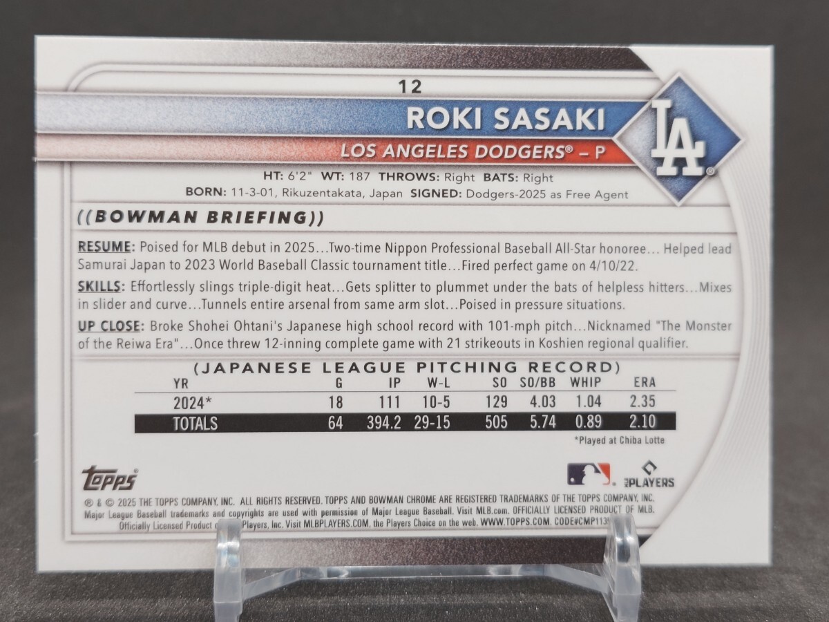 佐々木朗希 2025 Topps Bowman Chrome RED #12 ボウマン クローム レッドルーキー RC ドジャース