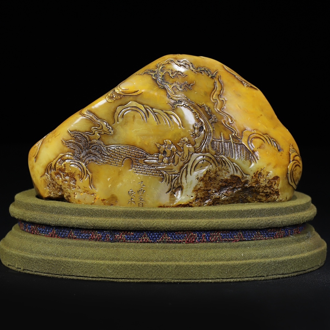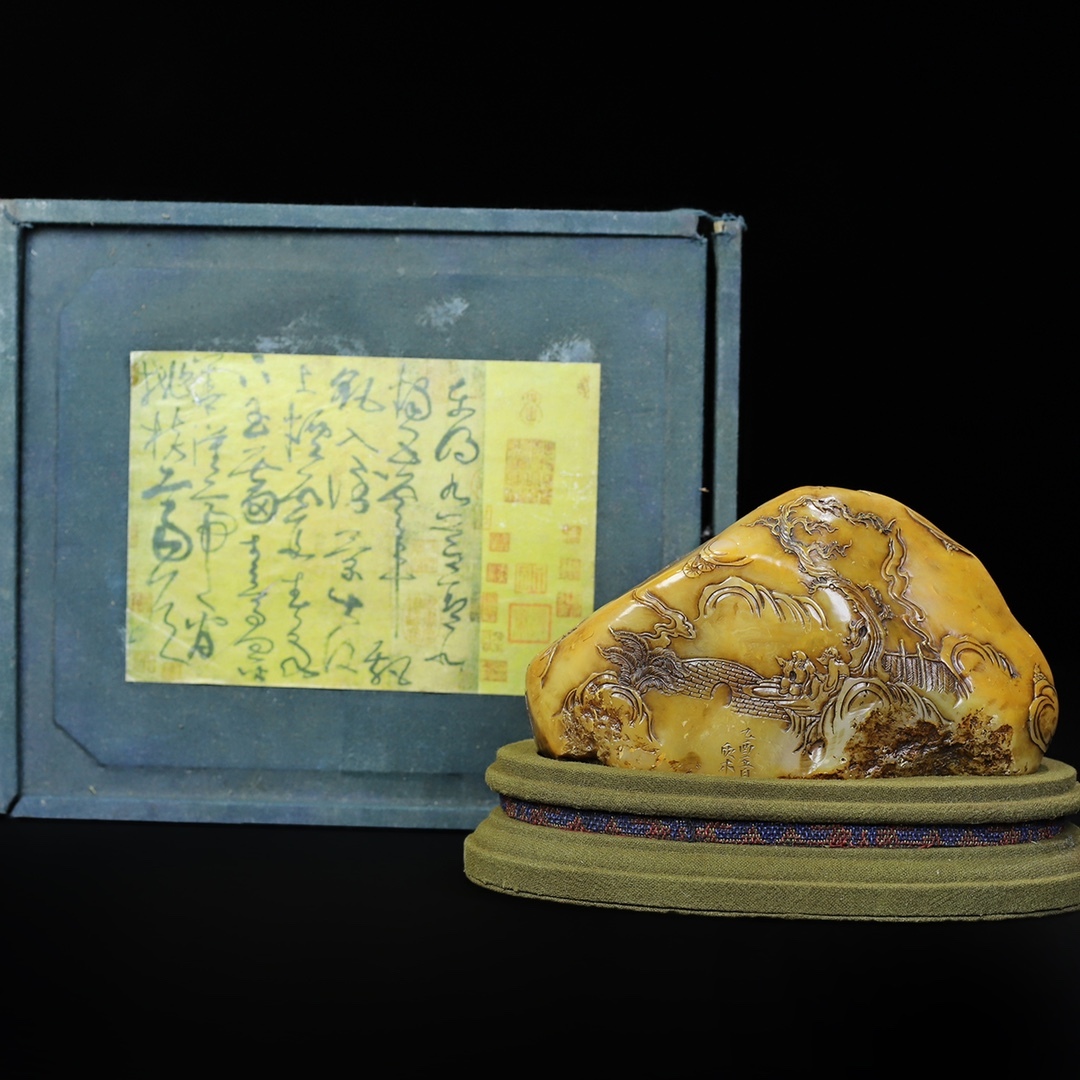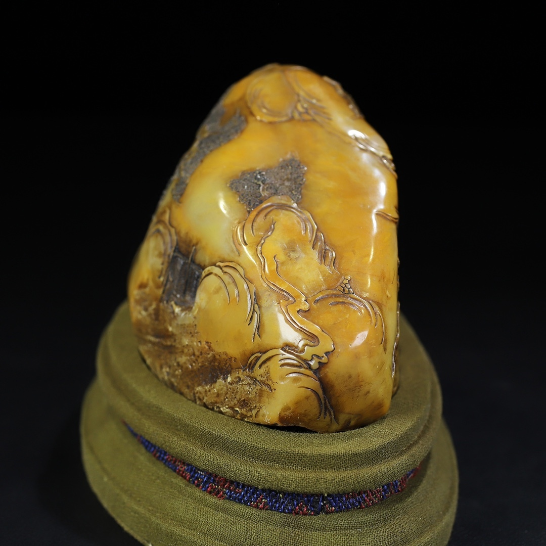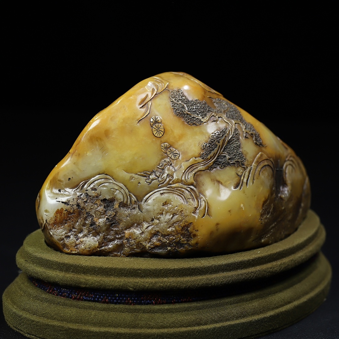 *珍品旧蔵*【清代篆刻家 高野侯 字:欣木】寿山石原石 『松下論道』 山水人物紋 印鑑 天然石 手彫 篆刻 古印材 極細工 中国古玩 骨董品H410
