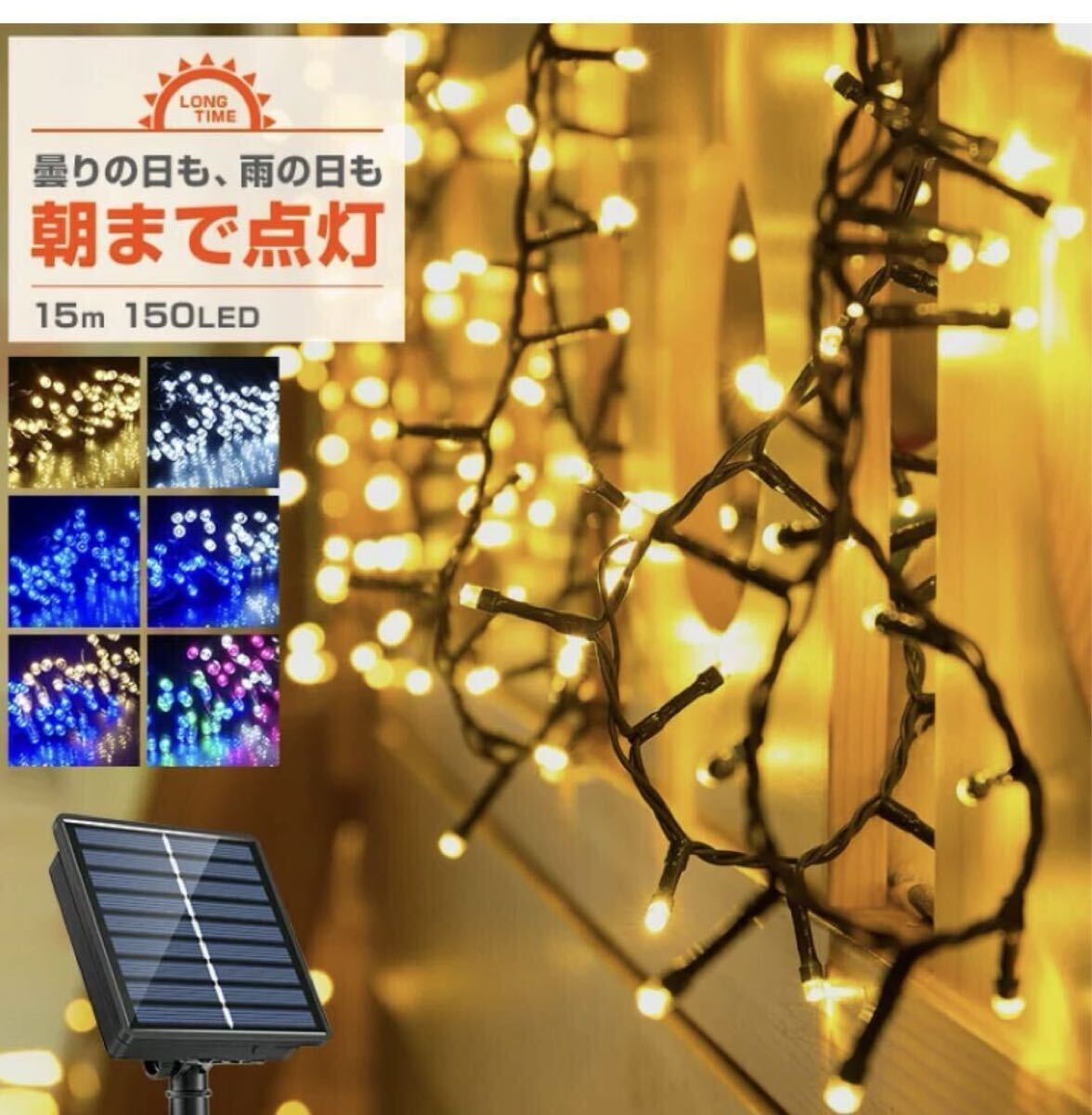 ソーラー イルミネーション ストレート LED 150球 15m 屋外用 防水 長時間点灯 タイマー 8パターン点灯 安い led 充電式 ストリング ライト 電飾 クリスマス ツリー 樹木 フェンス ハロウィン キャンプ