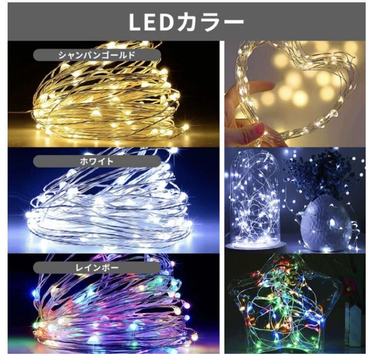 LEDカラーシャンパンゴールド、ホワイト、ブルー、ブルー&ホワイト、シャンパンゴールド&ブルー、レインボー