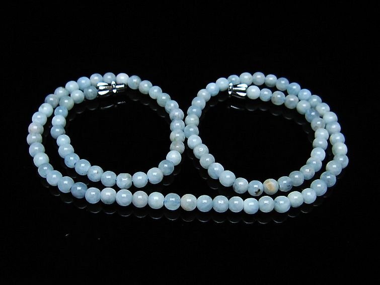 | ■商品名: アクアマリンネックレス ■商品ID: T556-3419 ■商品重量:約 10.4g ■商品サイズ:粒直径約:4mm 【アクアマリン(藍玉)】 3月の誕生石として知られた天然石です。 ベリル(緑柱石)の一種のためエメラルドやモルガナイト、レッドベリルなどと同じグループにあるパワーストーンで、アクアマリンはブルーベリルの別名を持ちます。 「アクアマリン」という名称の語源はラテン語で水の意味のアクアと海の意味のマリナスに由来しています。 古代ローマの漁夫たちが海難防止と豊漁のお守りにしていたことや、海の精の宝物が海底から浜辺に打ち合げられて宝石になったとされているという言い伝えがあり、アクアマリンは旅の安全のお守りとして一つは持っておきたいストーンです。 また、アクアマリンは穏やかさと包容力をもたらし、免疫力を高め体の不調を整え精神面と体調面でのサポートをしてくれるとされています。 さらには夫婦愛を高め恋人同士のすれ違いを無くすとされ、安産や子宝に恵まれる効果もあるともいわれています。 このように幸せな結婚を象徴する事から、アクアマリンは結婚や出産の贈り物におすすめです。 ⇒ アクアマリンをもっと詳しく ◆ワンポイント情報 アクアマリンの劈開は不明瞭、モース硬度は7.5~8となり十分な硬度がありますのであまり取り扱いに神経質になる必要はありませんが、石自体の内部にあるクラックやインクルージョンに力や衝撃が加わると割れてしまう可能性もある点にご注意下さい。 |