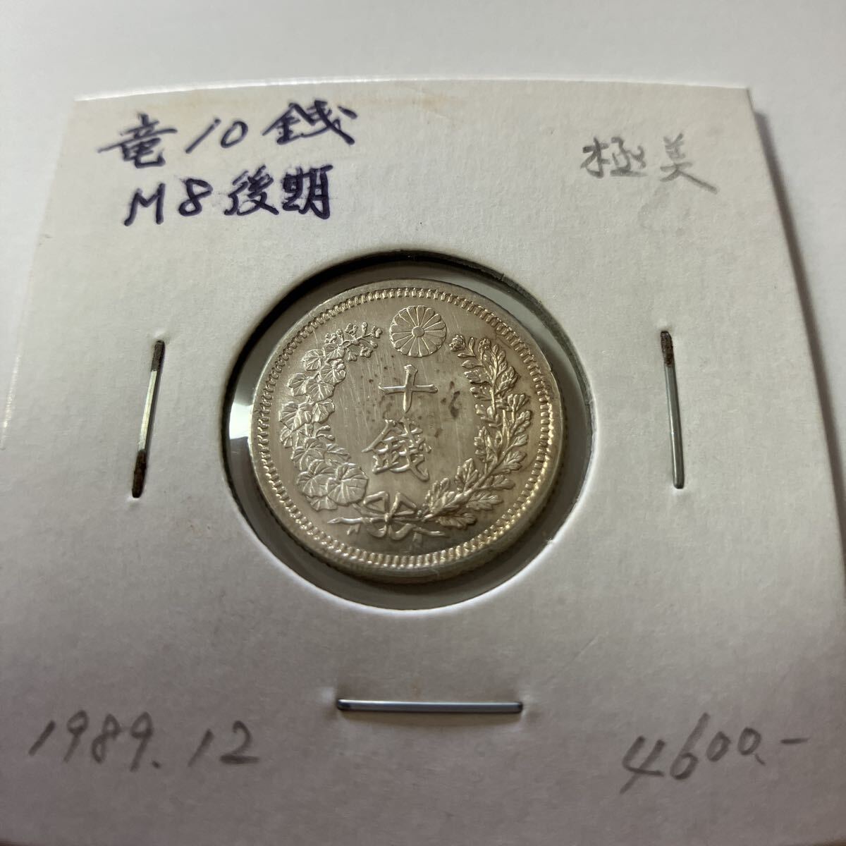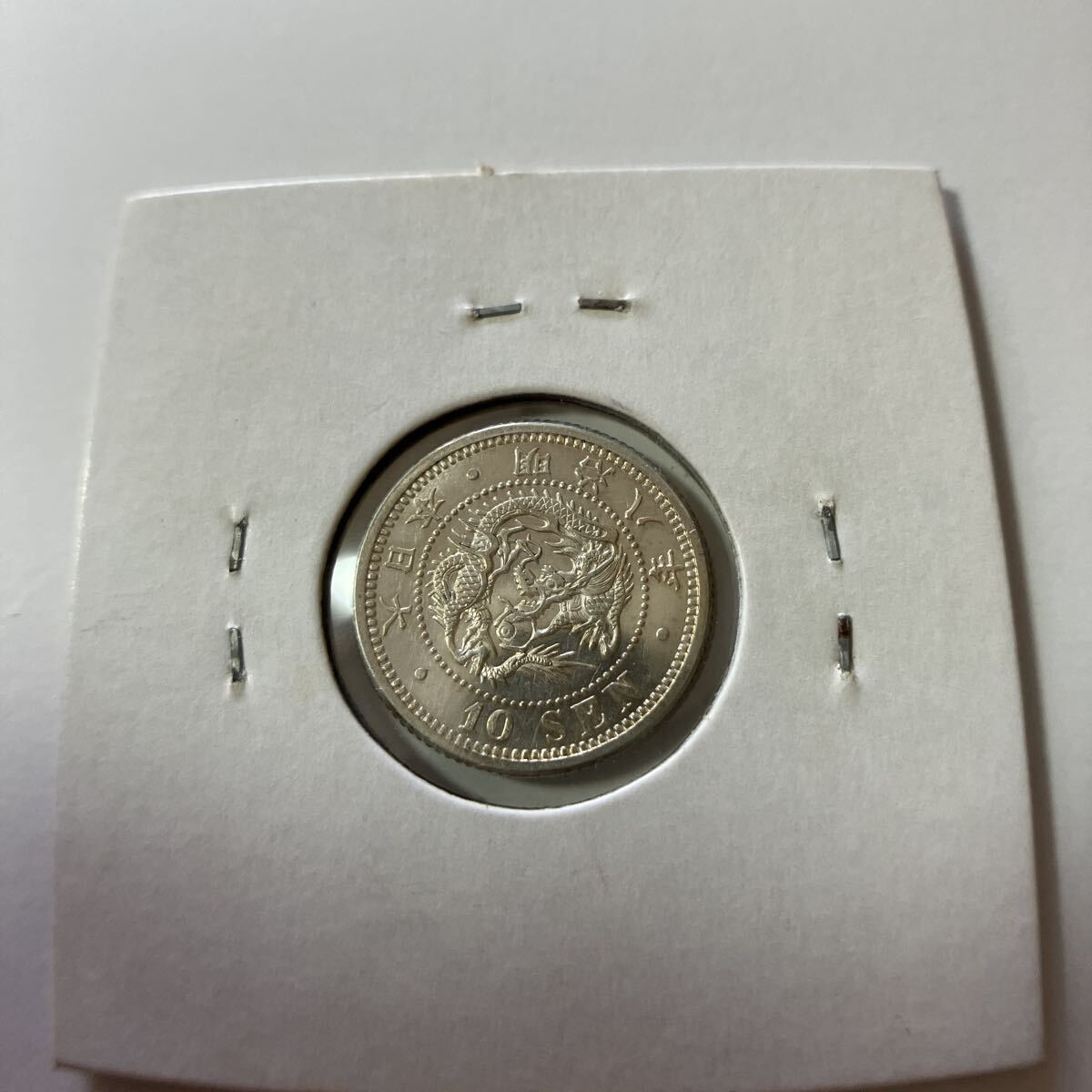 【本物保証】極美品!!近代貨幣 竜10銭 銀貨 明治8年 ホルダー入り 古銭 硬貨 貨幣 銀貨 アンティーク ③ ★10