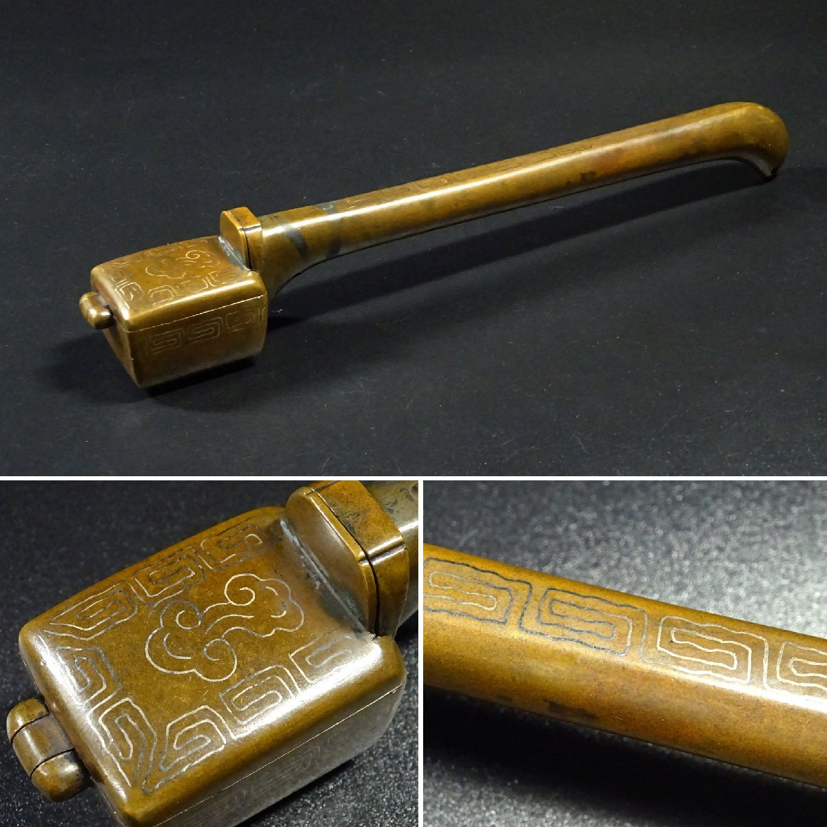 【敬逢】秀逸 矢立コレクション 江戸時代 古銅地 本銀象嵌 雷雲紋矢立 金工 提物 根付 粋な筆記道具 墨壷 極上細密細工 16