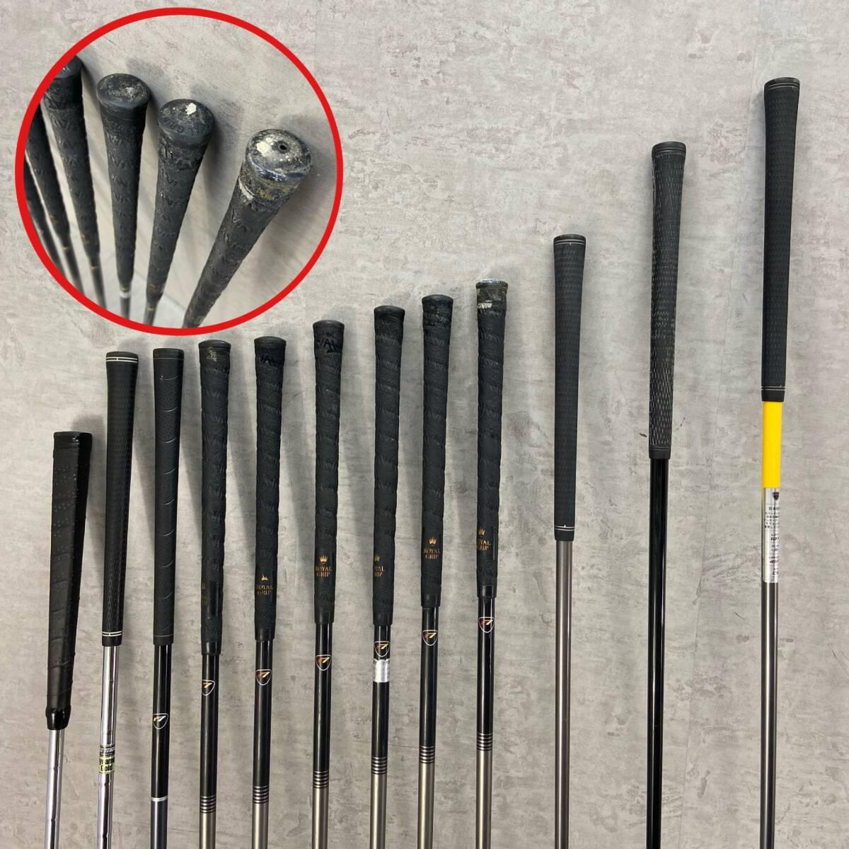 こちらの商品は中古品のため、アイアンのヘッドのバックフェースに傷や汚れ、グリップの劣化、キャディバッグの生地の多少の劣化などがある状態の商品になります。