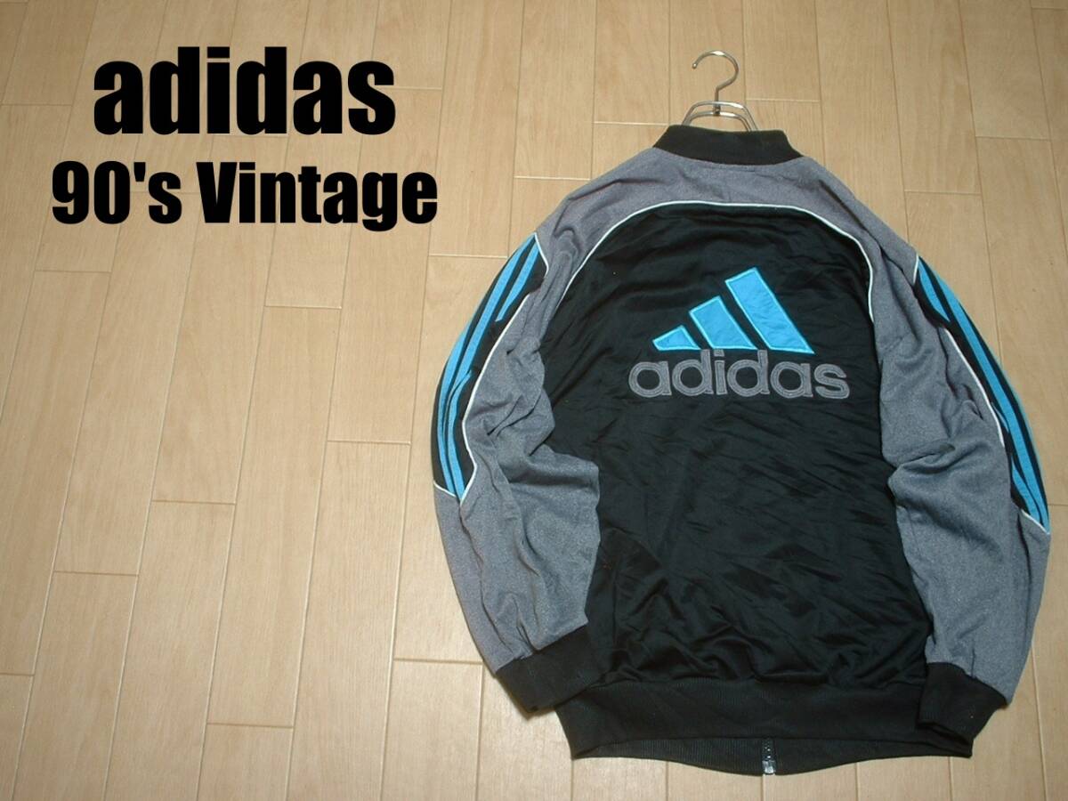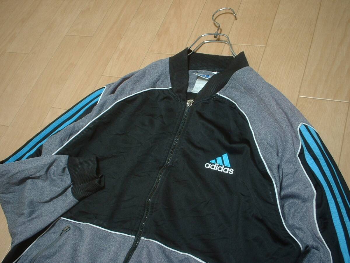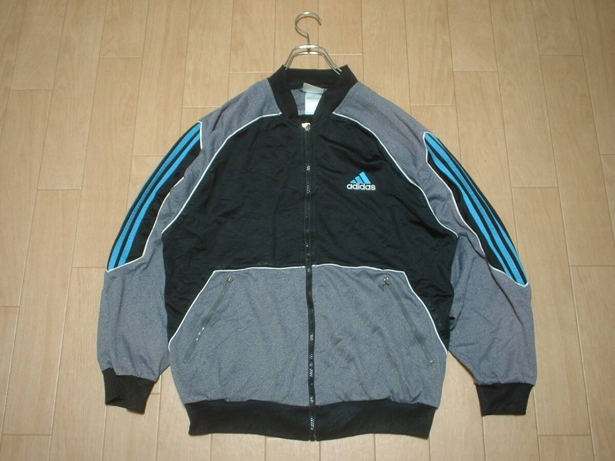90sビンテージadidasパフォーマンスロゴ刺繍スリーストライプスジャージトップL正規オールドアディダストラックジャケット万国旗タグ
