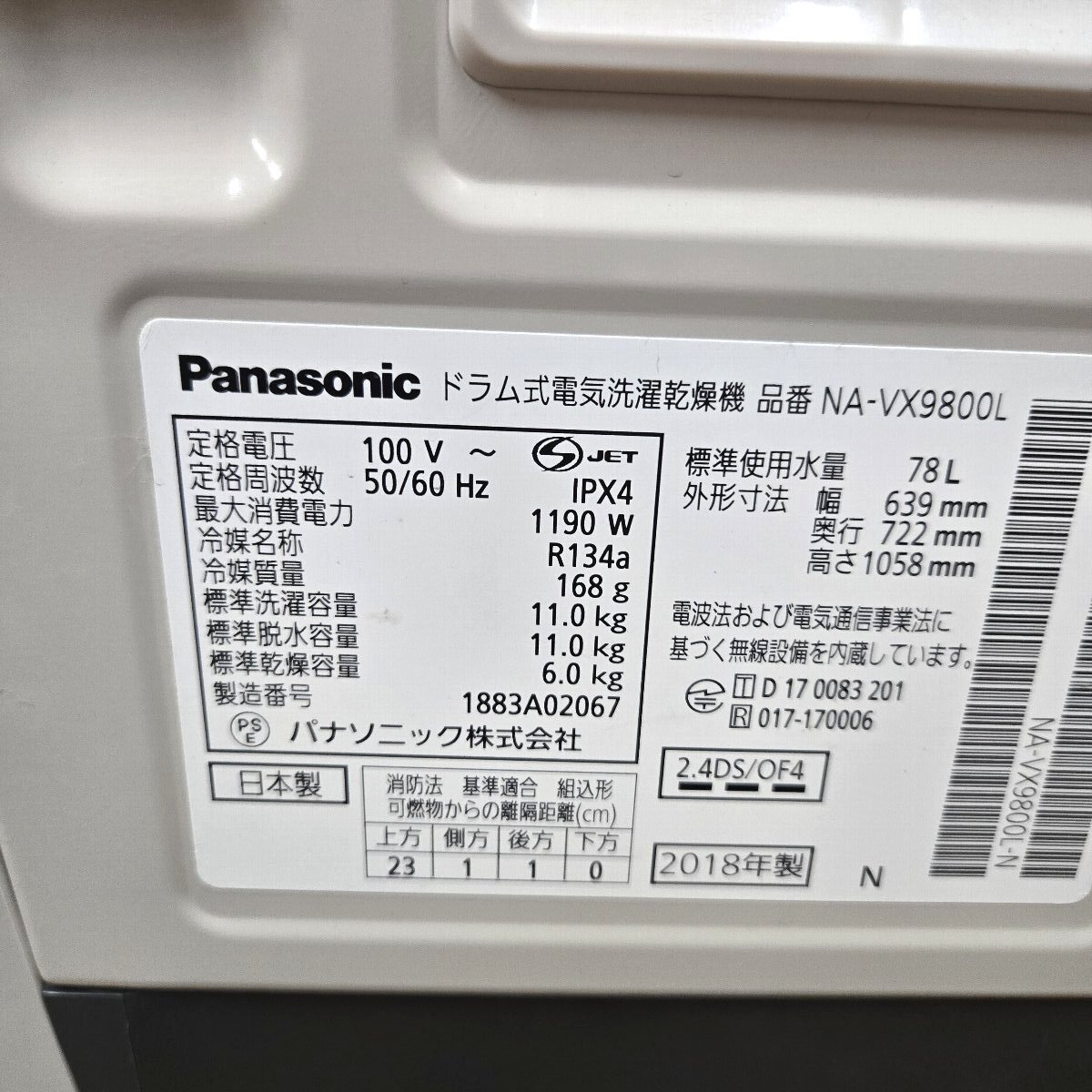 ◆◇5i180 Panasonic パナソニック ドラム式電気洗濯機 NA-VX9800L 11kg W639×D722×H1058 家庭用 ななめドラム 美品 動作確認済み♪◇◆