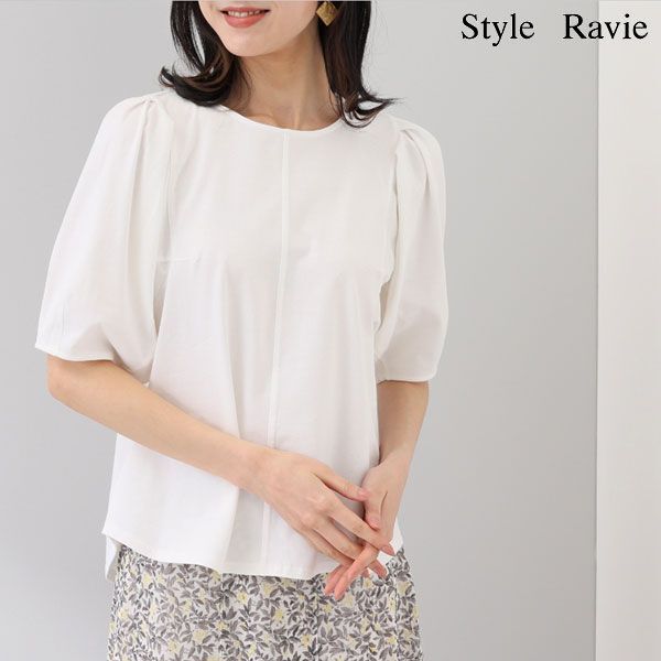 内 容 | ■スタイル・ラヴィー スタイルアップデザイン プルオーバー ■サイズ 9号(M) 胸囲96cm 肩幅31cm 袖丈33cm 着丈63-54cm ■素材 綿100% ■詳細 ・開きの場所:なし ・開きの仕様:(後中心)ボタン1個 ・襟のデザイン:ラウンドネック ・袖の長さ:五分袖 ・袖のデザイン:パフスリーブ ・ウエストシルエット:ストレート ・裏地:なし ・裾スリット:なし ・肩パット:なし ・ポケット:なし ■カラー オフホワイト 天然繊維特有の爽やかな肌触りとしなやかさがある、 コットン100%の軽やかなカットソー素材を使用。 身頃はダーツと切り替えで立体的にカッティングしたパターンで作製。 カットソーアイテムと思えないような、美しいシルエットが魅力的です。 袖付けにタックを、袖口にダーツを配して、 立体的なコンシャススリーブにデザインしました。 |