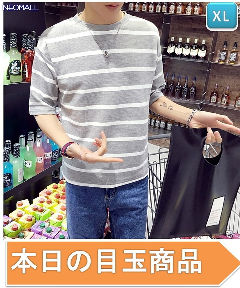 本日の目玉 ☆ 丸首 半袖 ボーダー Tシャツ【306】グレー XLサイズ トップス お洒落 シンプル 春夏