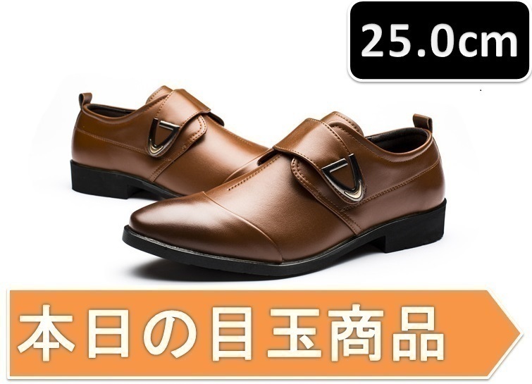 本日の目玉 ☆ メンズ ビジネス レザー シューズ ブラウン サイズ 25.0cm 革靴 靴 カジュアル 屈曲性 通勤 軽量 【207】