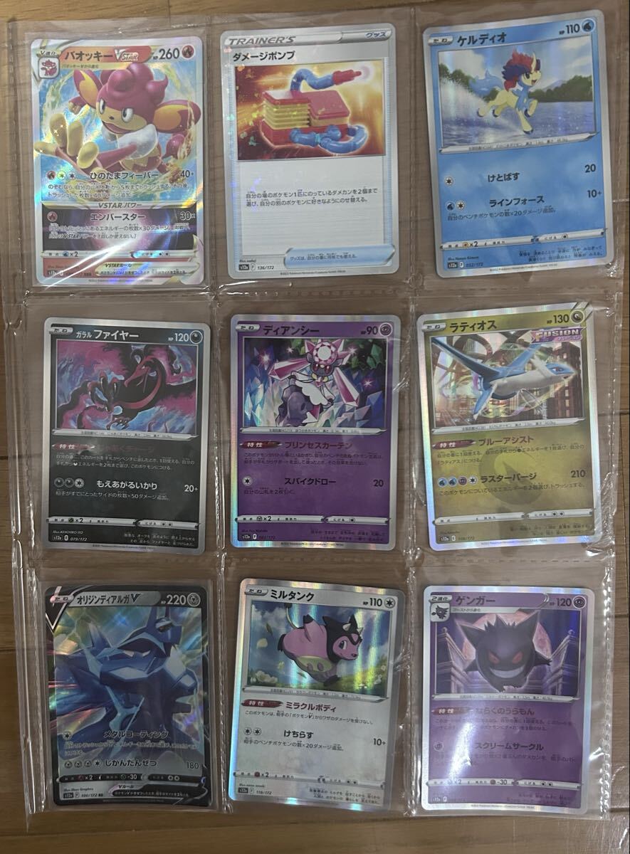 明らかな傷はないですが、開封後スリーブに入れず保管していたため、V・VSTARカードの一部に軽い反りがあります。プレイ用としてご利用下さい。