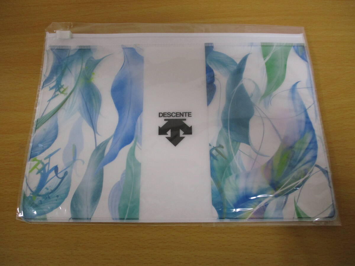 新品保管品!デサント★<スライドジッパー・ビニールポーチ>★白・ブルー系