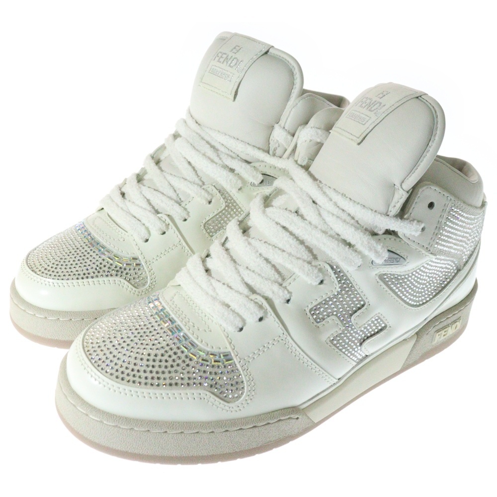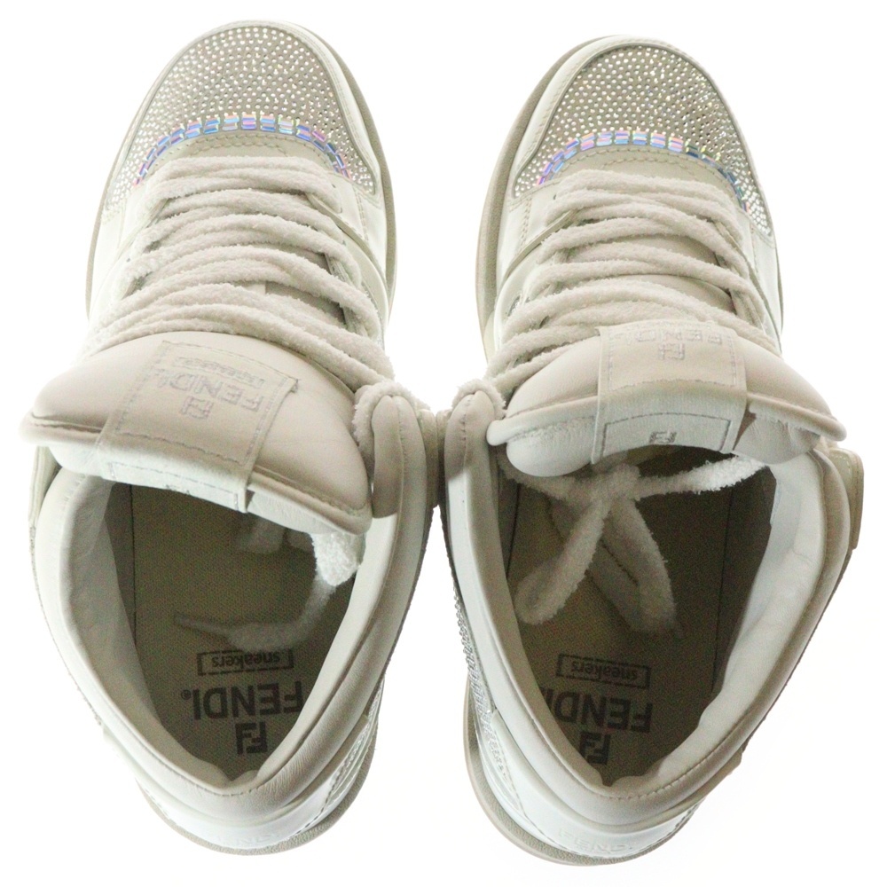 FENDI フェンディ FFロゴ ラインストーン レザー ミッドカットスニーカー ホワイト 7E1612 AN8K F014E