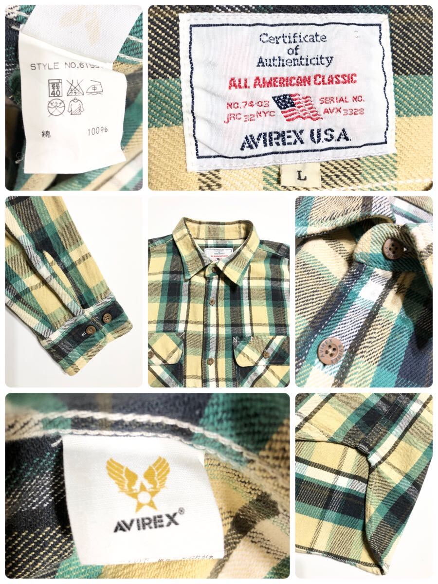 【品名】【良品】 AVIREX U.S.A アヴィレックス フレネルシャツ コットン タータンチェック柄 アメカジ サイズL 長袖 厚手
