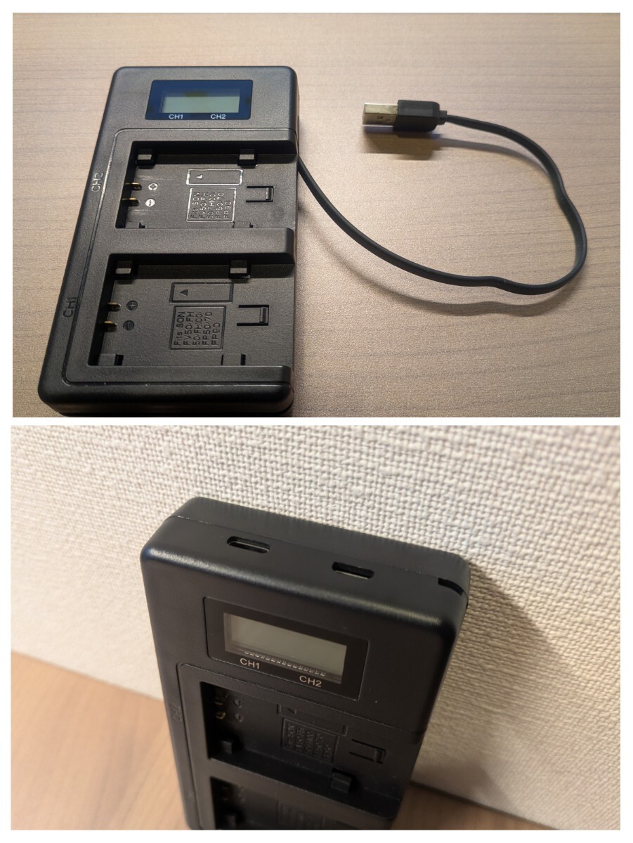 付属品は純正バッテリー、HDMIケーブル、充電器となります。充電器はType-Cを挿せるため非常に便利です。
