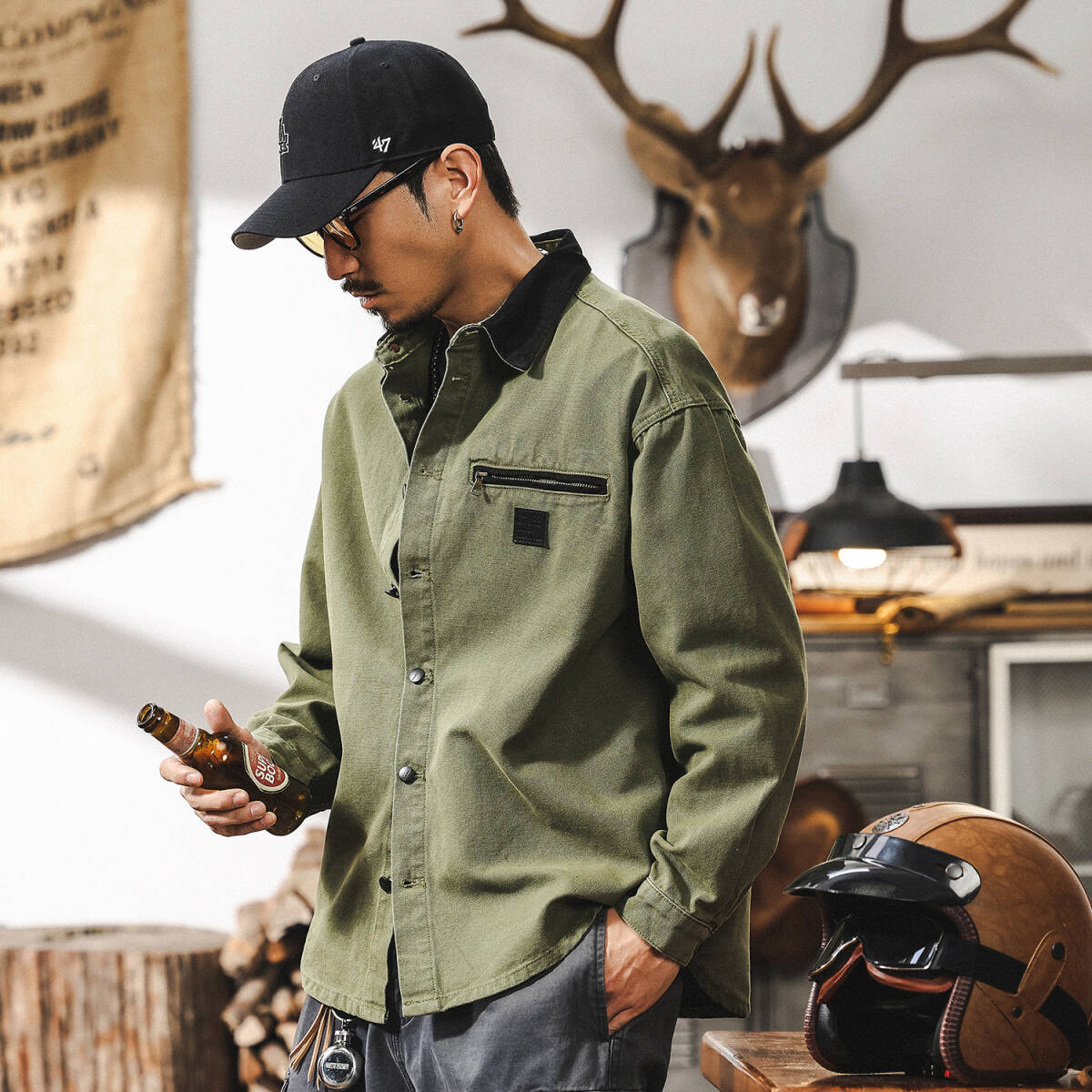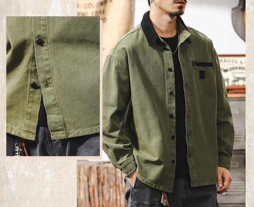 カーゴシャツ メンズ・新品 長袖シャツ シャツジャケット ワークシャツ ヴィンテージ 春秋 トップス ブルゾン【1702】ブルー L