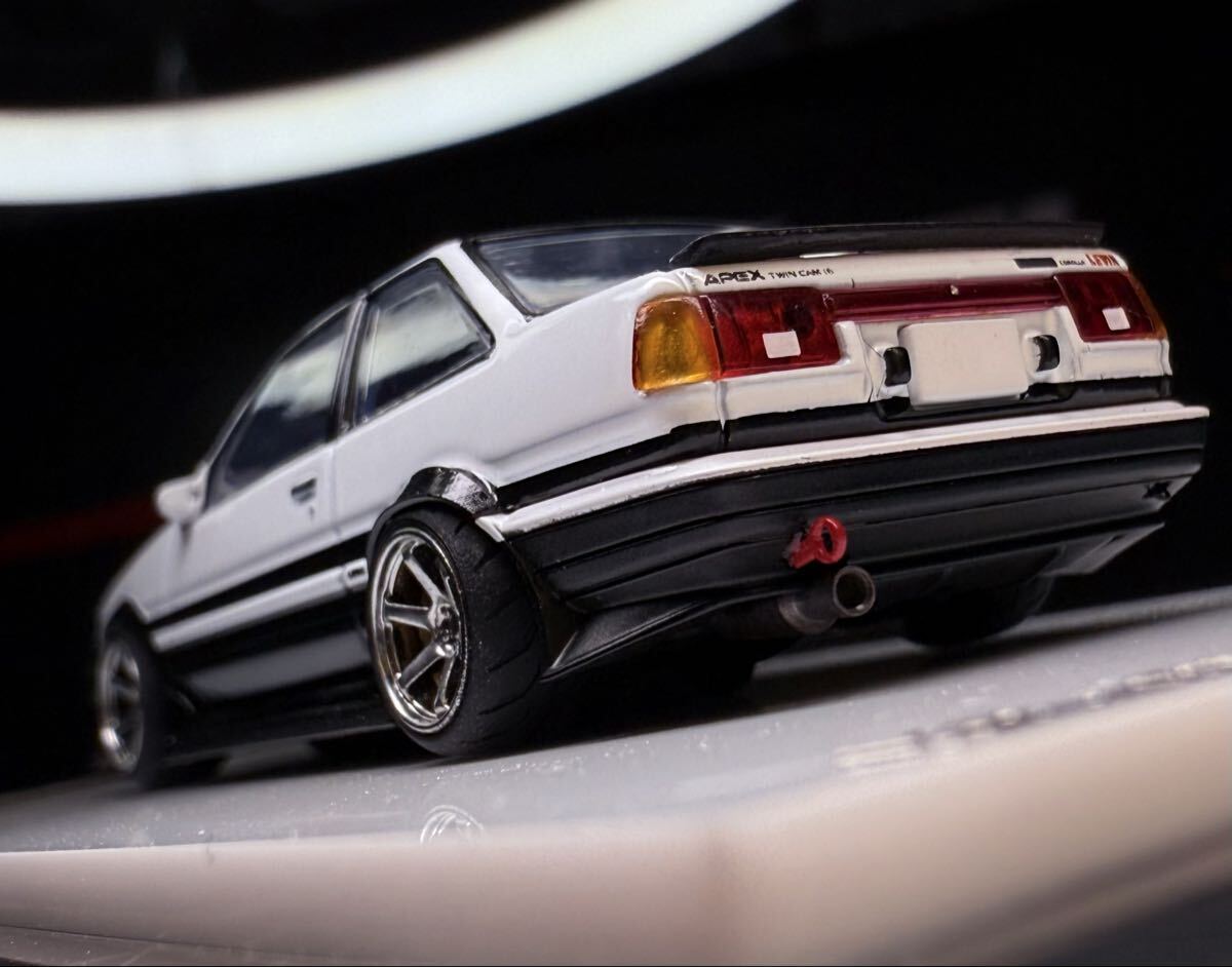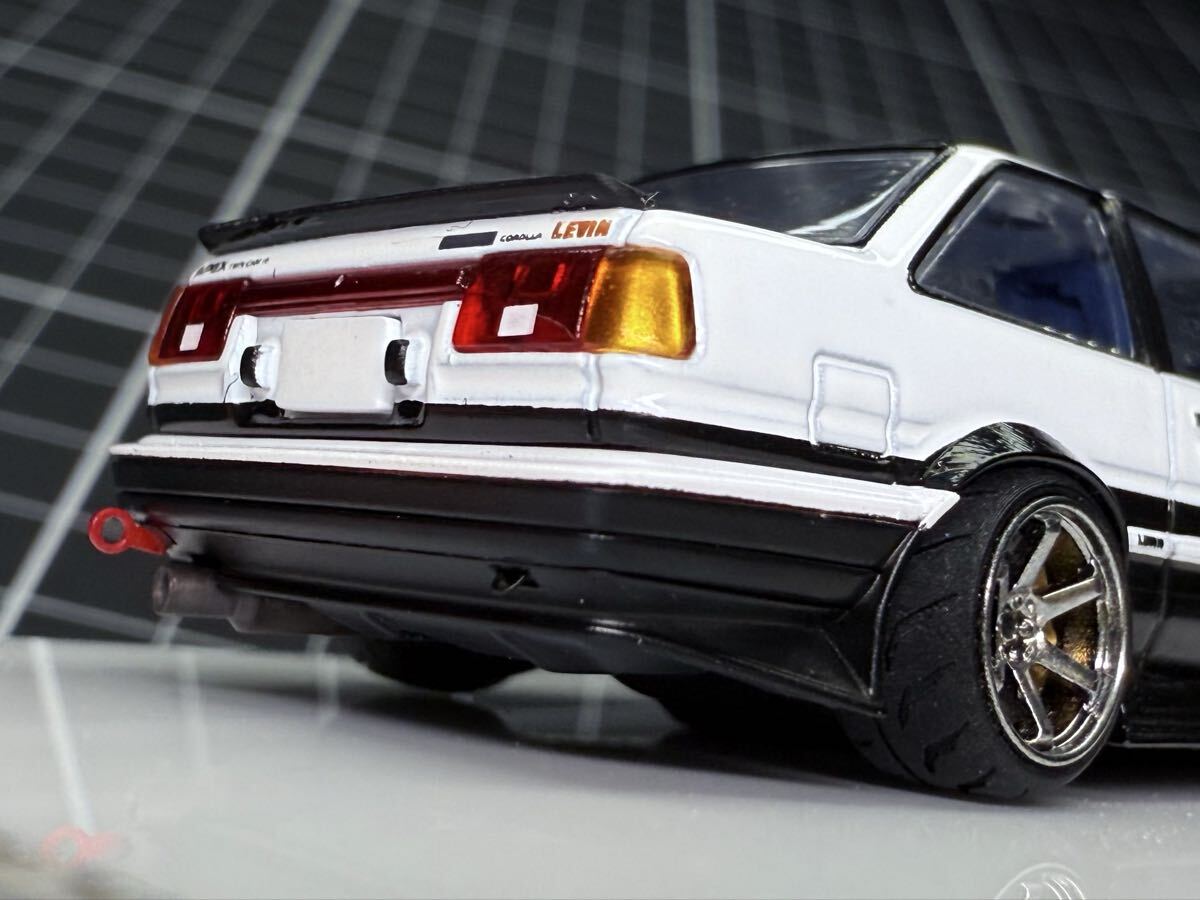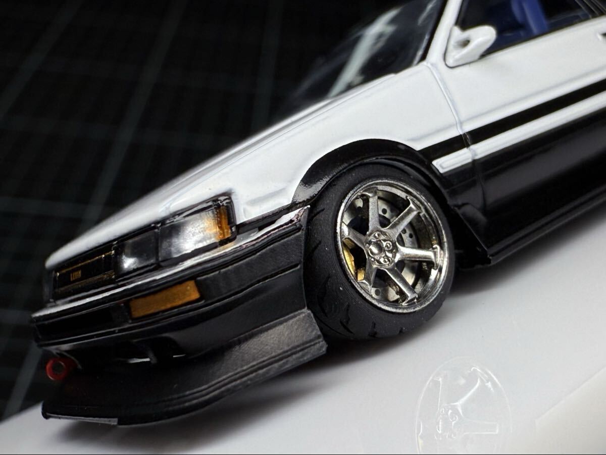 エアロは出来るだけ車体塗装の発色と近い色を吹いて、GSIクレオスのGX100スーパー光沢とGX114艶消しトップコートにて仕上げ済み