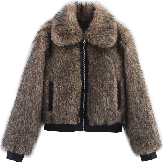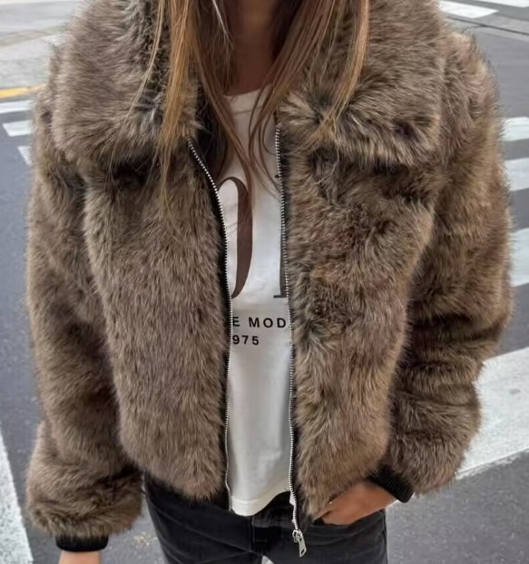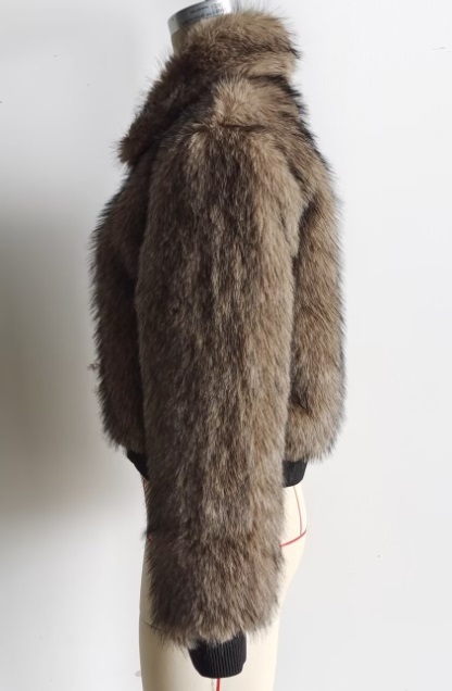 冬限定販売 新品 短ファーコート 毛皮 フェイクファコート ふわふわ 厚手 アウター 暖か ブラウン/L