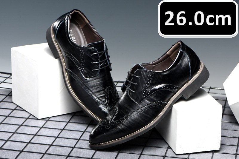 メンズ ビジネス レザー シューズ ブラック サイズ 26.0cm 革靴 靴 カジュアル 屈曲性 通勤 軽量 柔らかい 新品 【230】