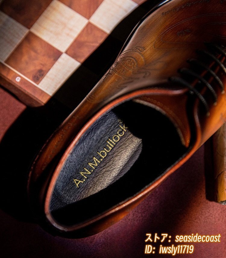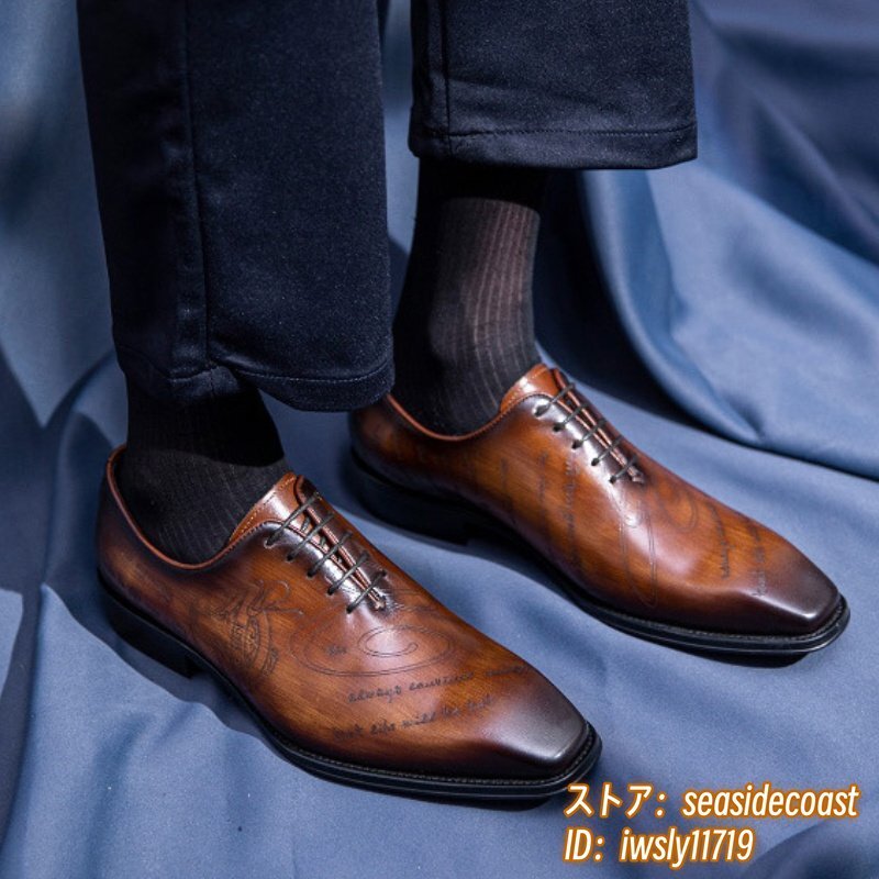 超美品★定価10万超 ビジネスシューズ 本革 彫り 職人手作り 高級牛革 レザーシューズ フォーマル 紳士靴 革靴 シンプル ブラウン 25.0cm