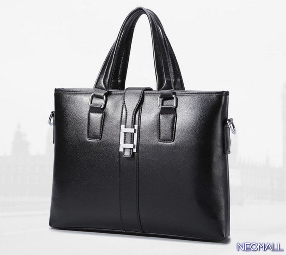人気☆ 新品 メンズ 高級PUレザー ビジネスバッグ【603】ブラック ブリーフケース ショルダー スクエア 横型 大人気 質感◎