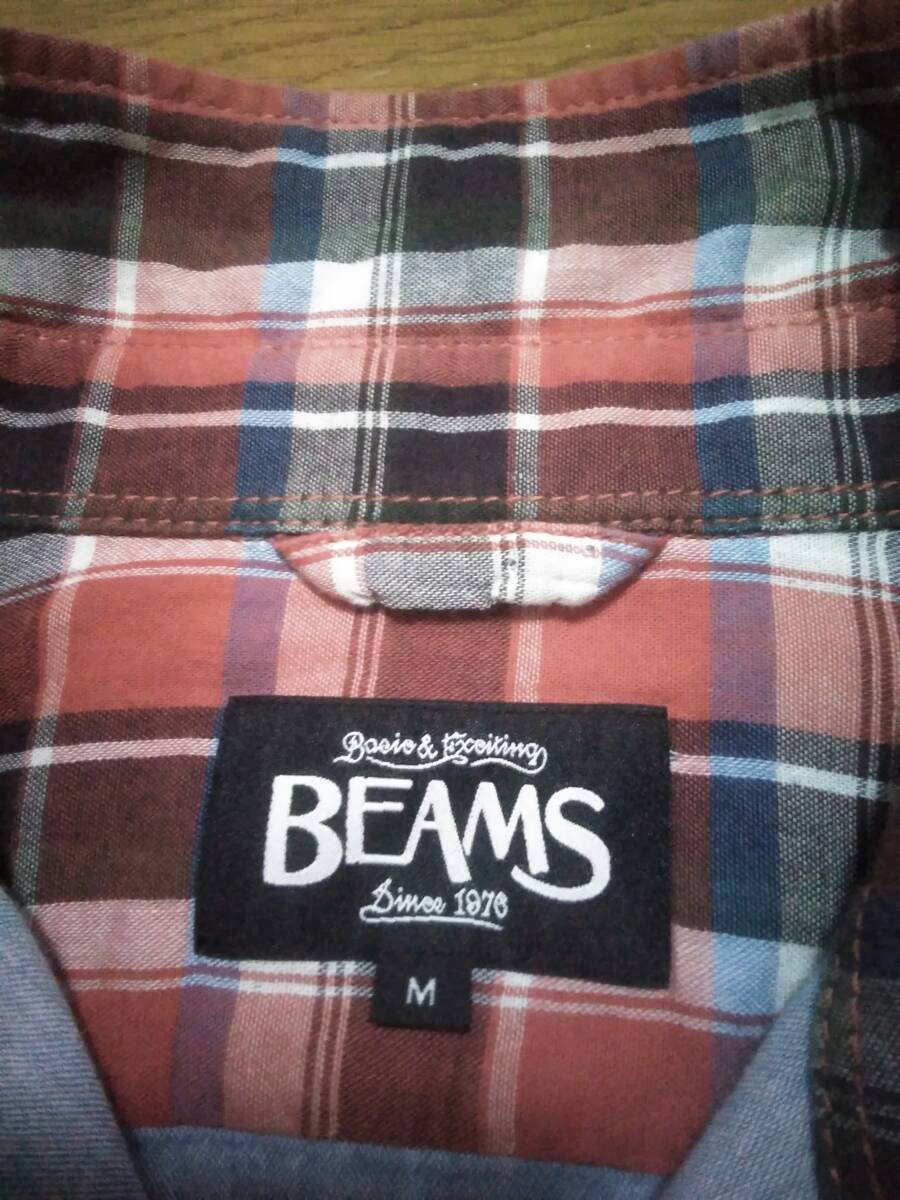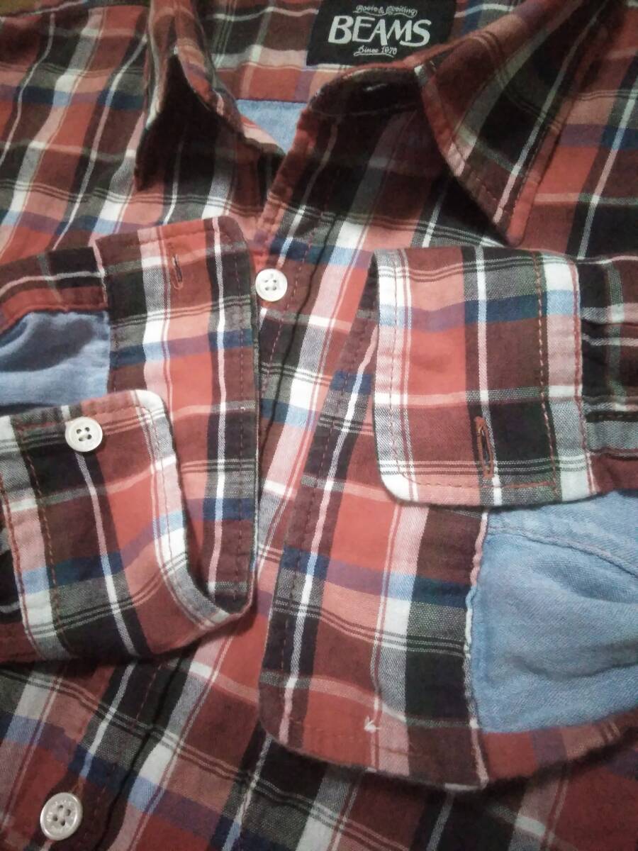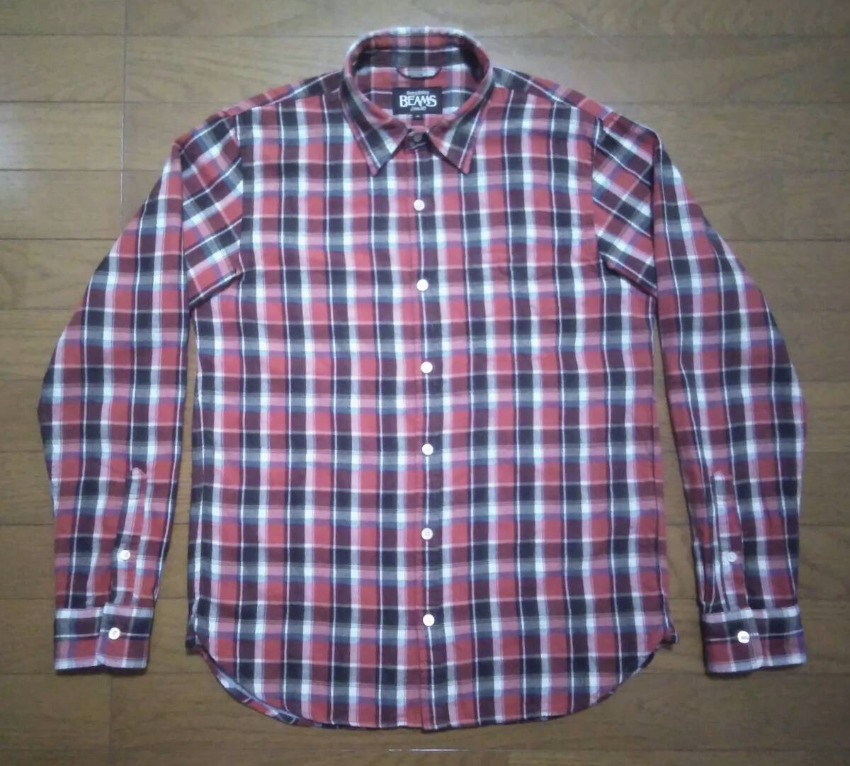 メンズM□BEAMS ビームス□Wガーゼ地 長袖チェックシャツ/朱色