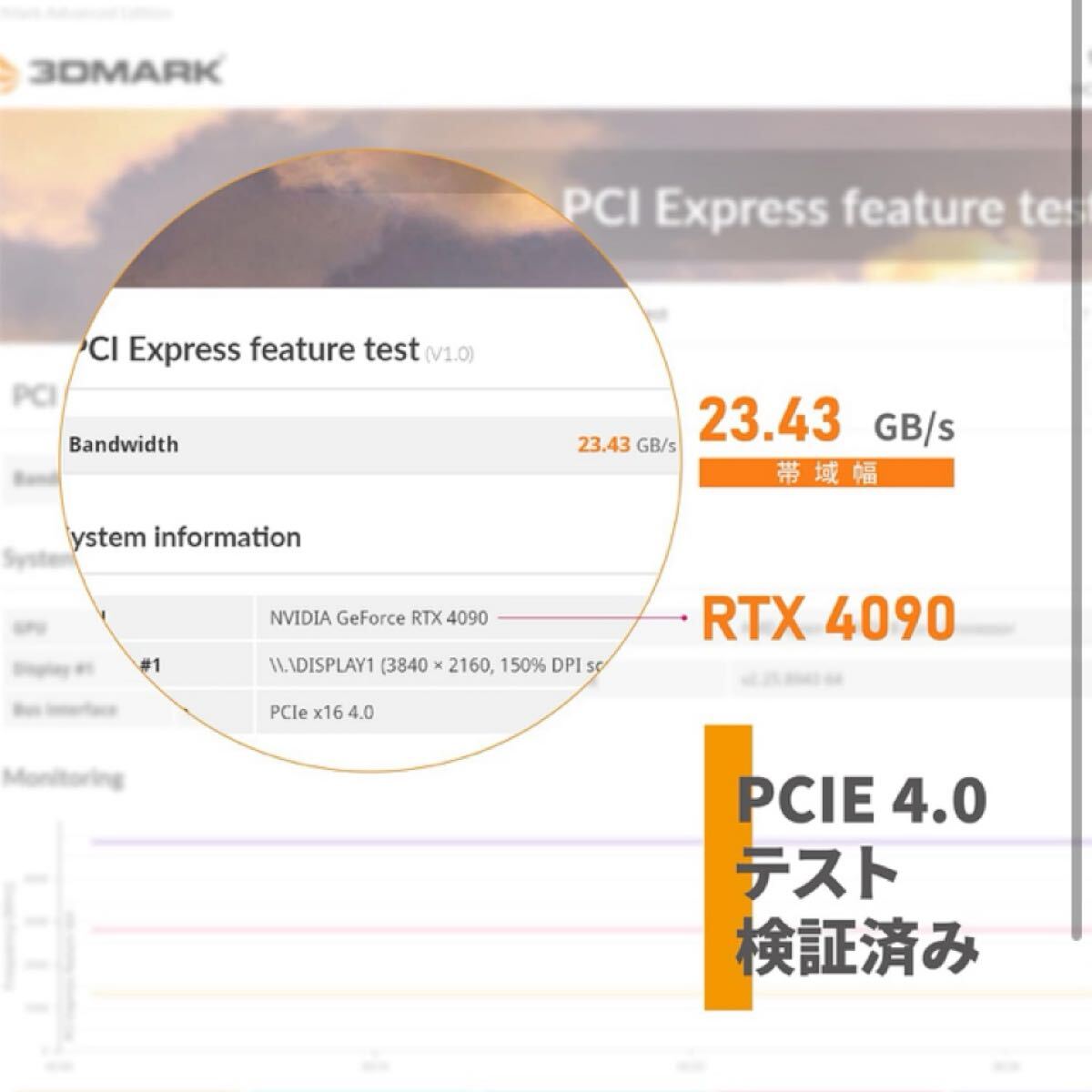グラフィックス カードとの互換性 - RTX4090、RTX4080、RTX3090、RTX3080ti、RTX3080、RTX3070ti、RTX3070、RTX3060ti、RTX3060、RX6900XT、RX6800XT、RX6800、RX6700XT、RX6600XT、その他 / チップセット - X670、X570、B6、Z06、B95 将来の新しい Gen4 GPU とチップセット。
