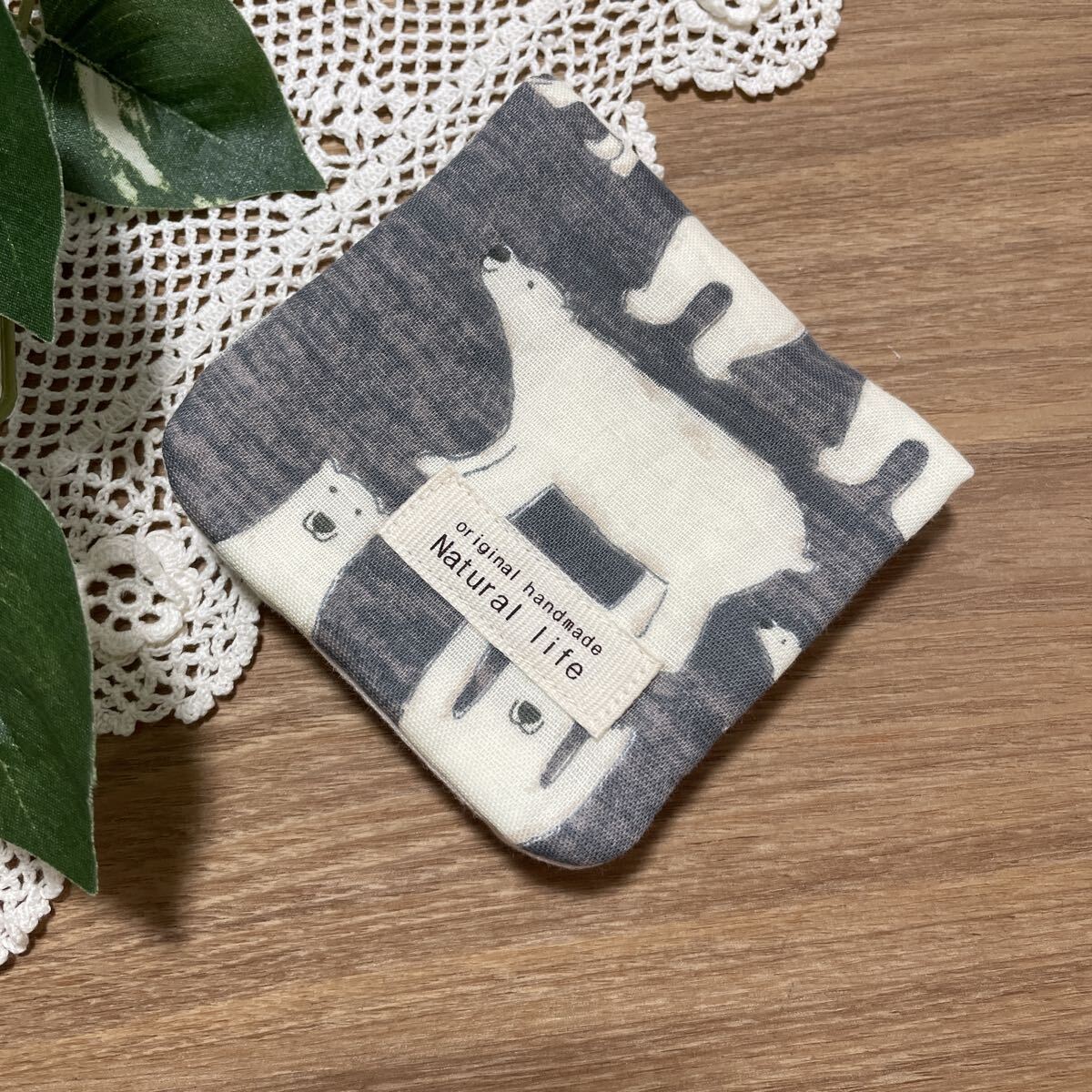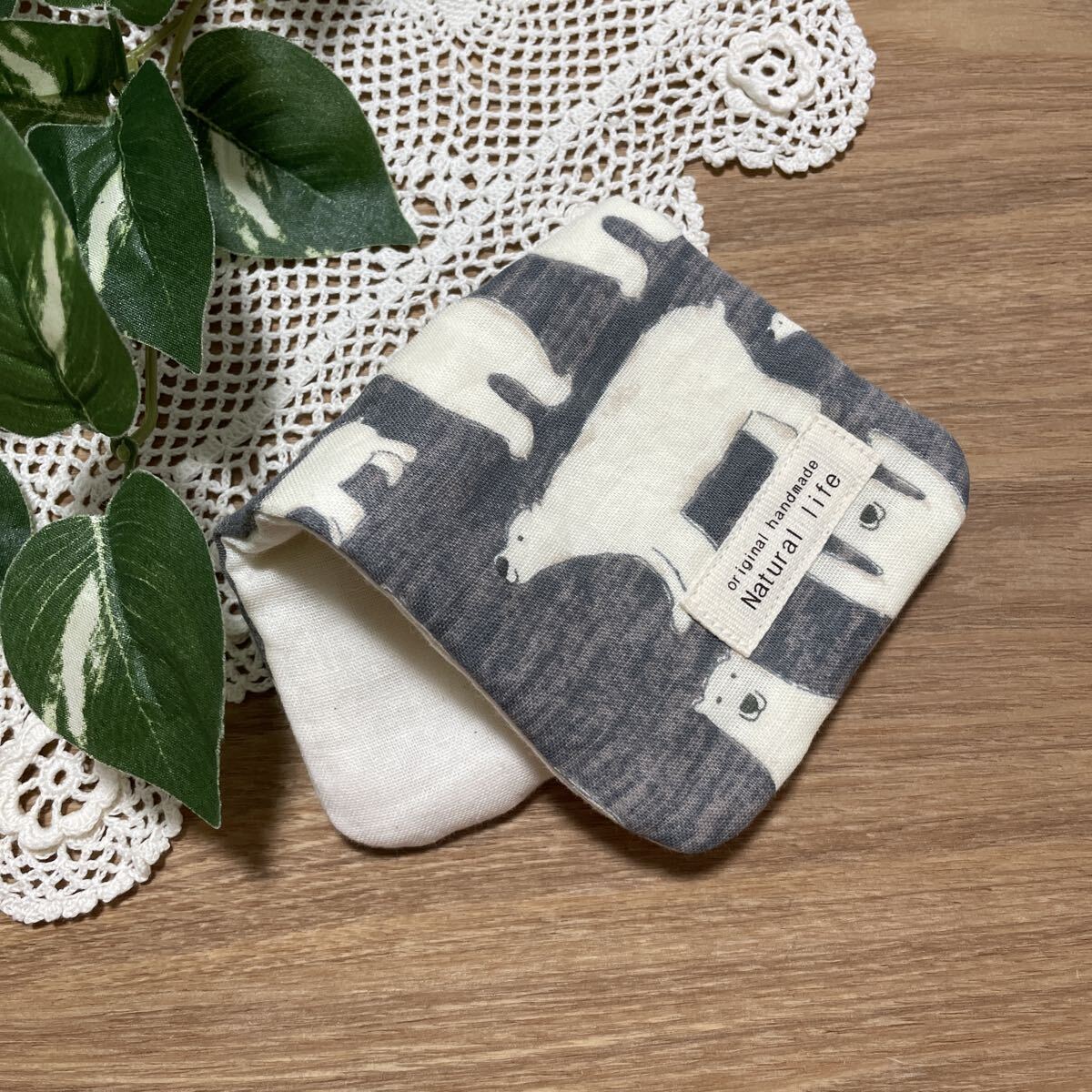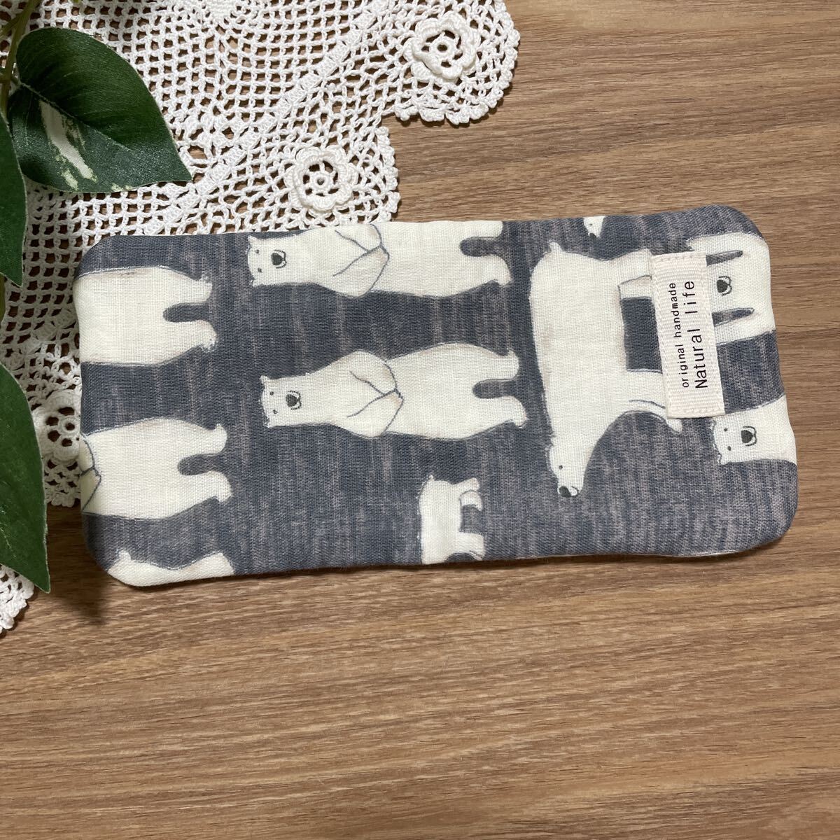 566 ハンドメイド ハンカチ ハーフサイズ シロクマ