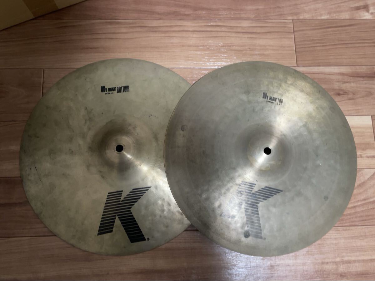 使用感のあるKジルジャンハイハット、両面に打痕あり。