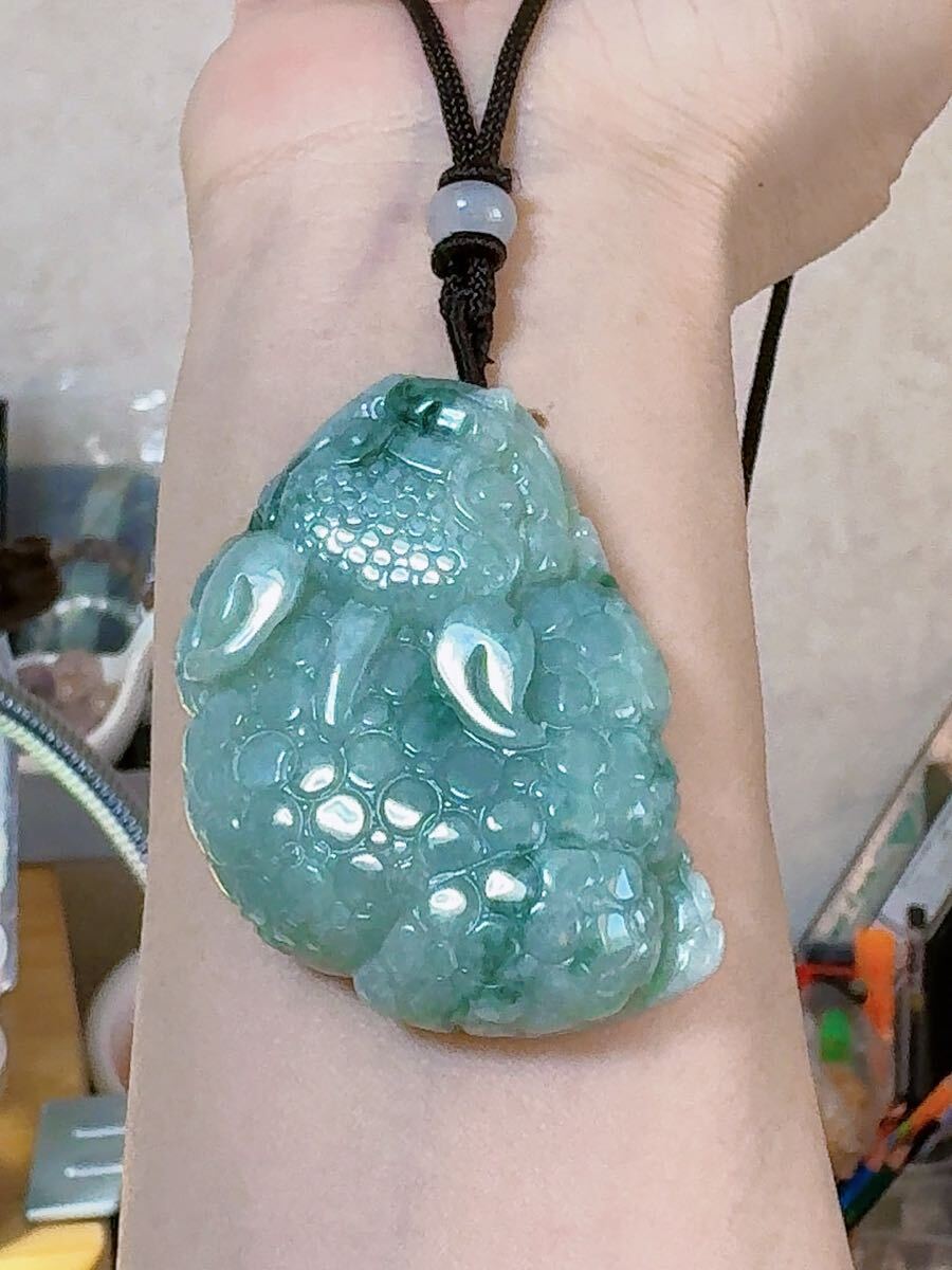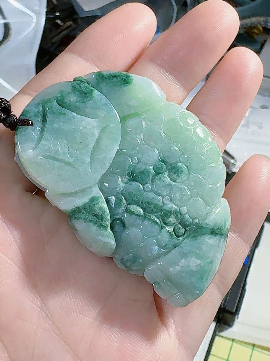 R2-02442 訳あり 天然本翡翠《本物保証》 亀ちゃん ひすいペンダント 一点物 魔除け 昇進 成功 風水 金運 財運 幸運 幸福 縁起物