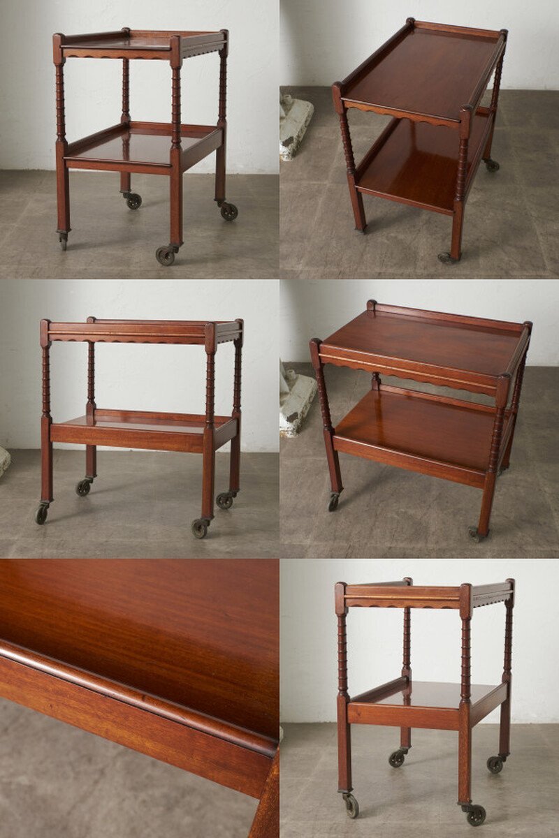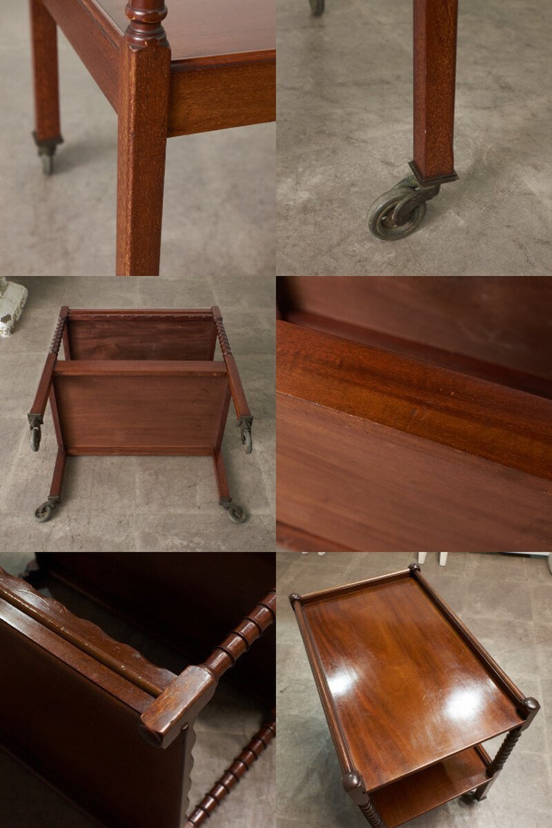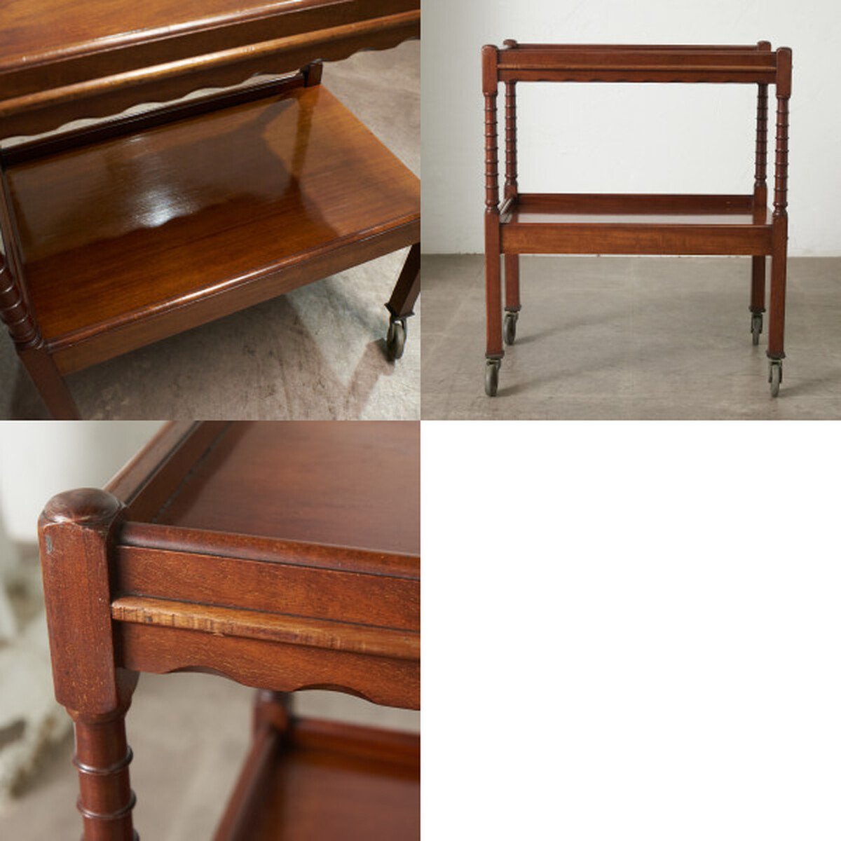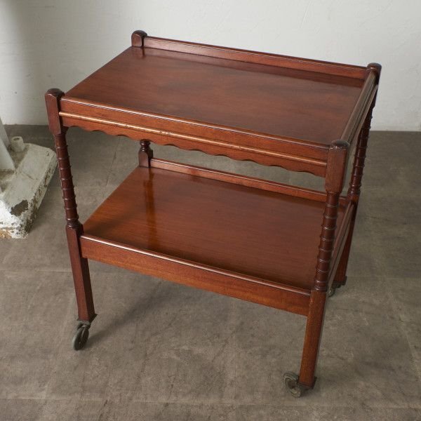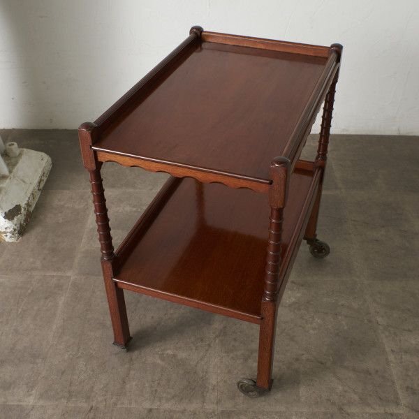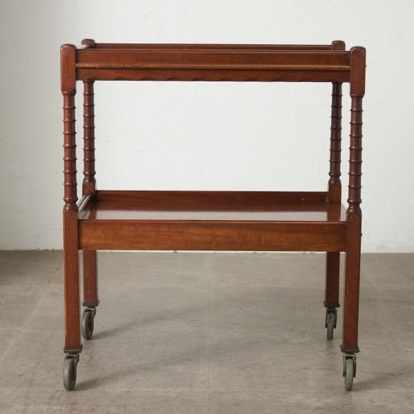 木目の美しいマホガニー材を用いた上質なトロリー。食べ物や飲み物を運ぶワゴンとしてはもちろん、キッチン横での収納やサイドテーブルとして、用途に応じてお使いいただけます。
