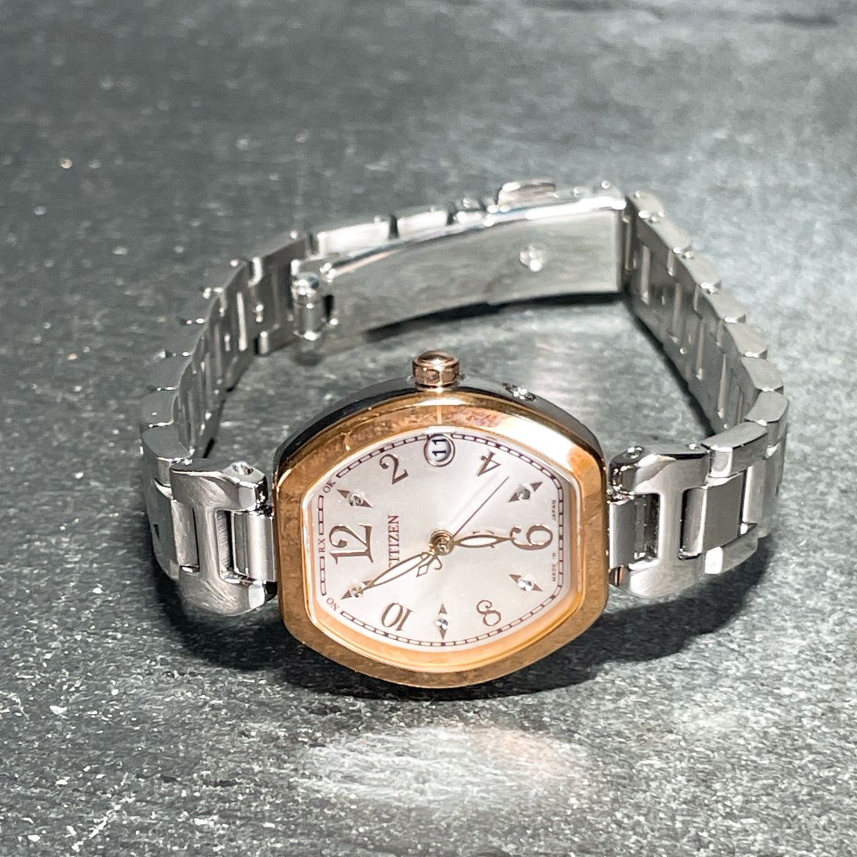 美品 CITIZEN シチズン XC クロスシー H058-T020089 腕時計 アナログ 電波ソーラー 3針 カレンダー メタルバンド シルバー ゴールド