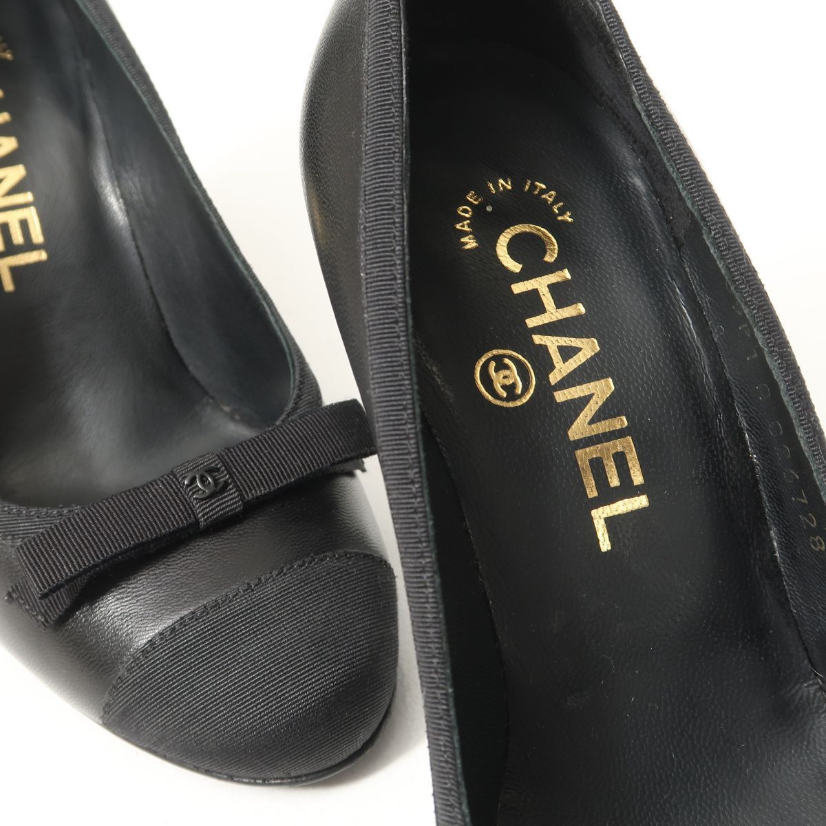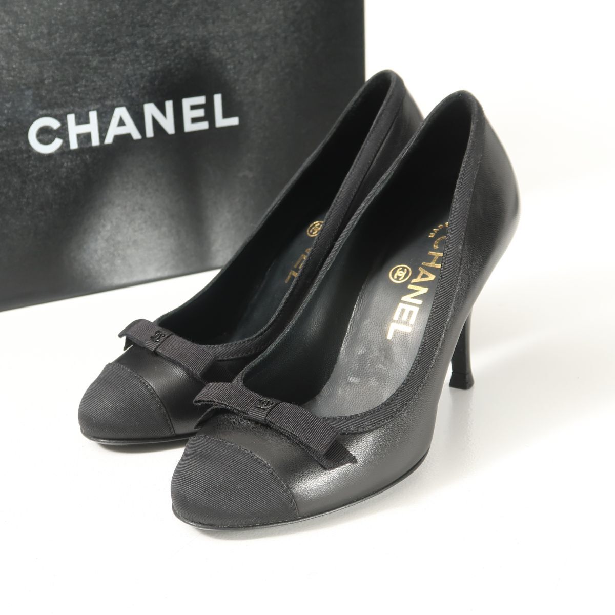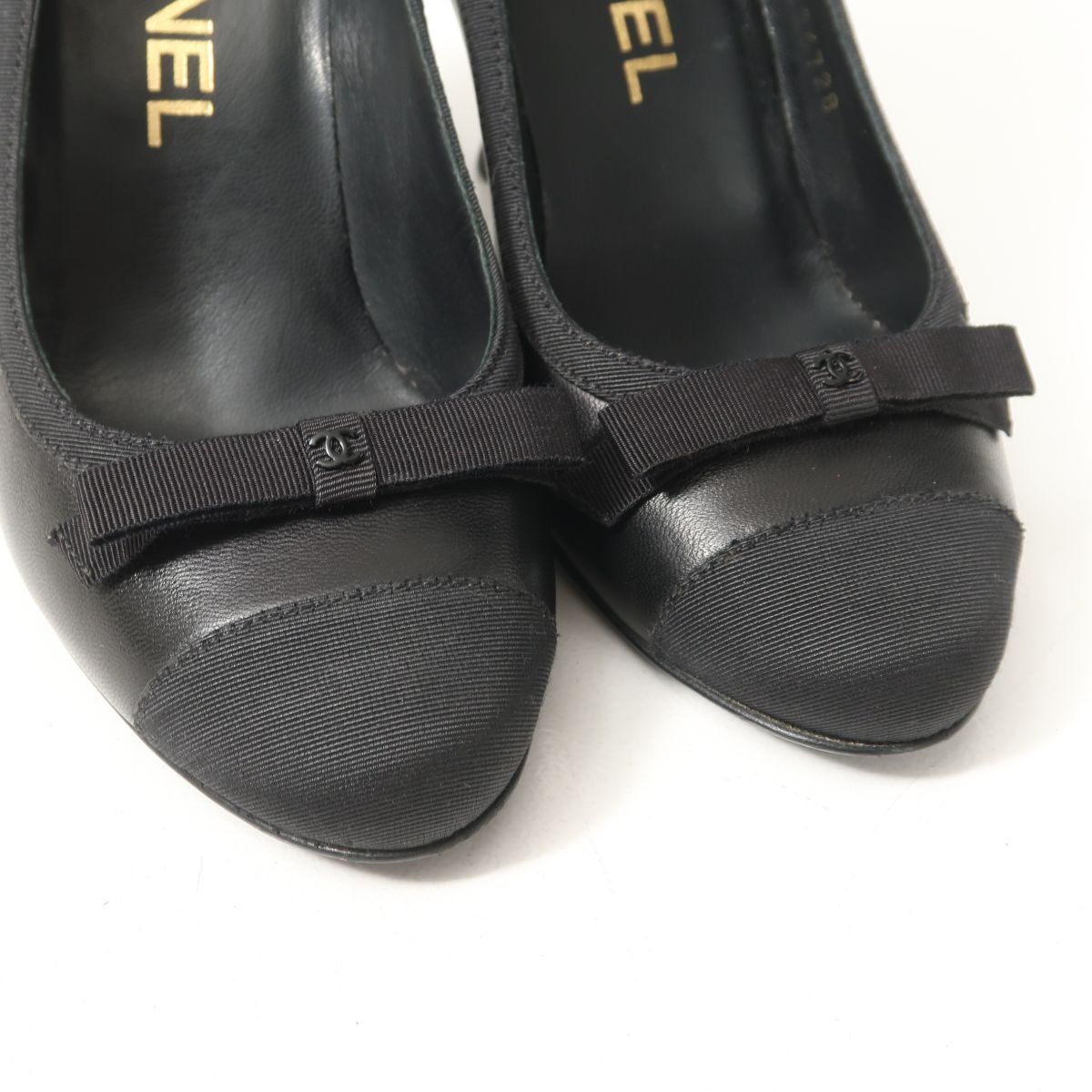 GS2756▲イタリア製 CHANEL シャネル G26728 CC ココマーク リボン レザー キャップトゥ ヒールパンプス ヒールチップ付き 34 靴 ブラック | |||