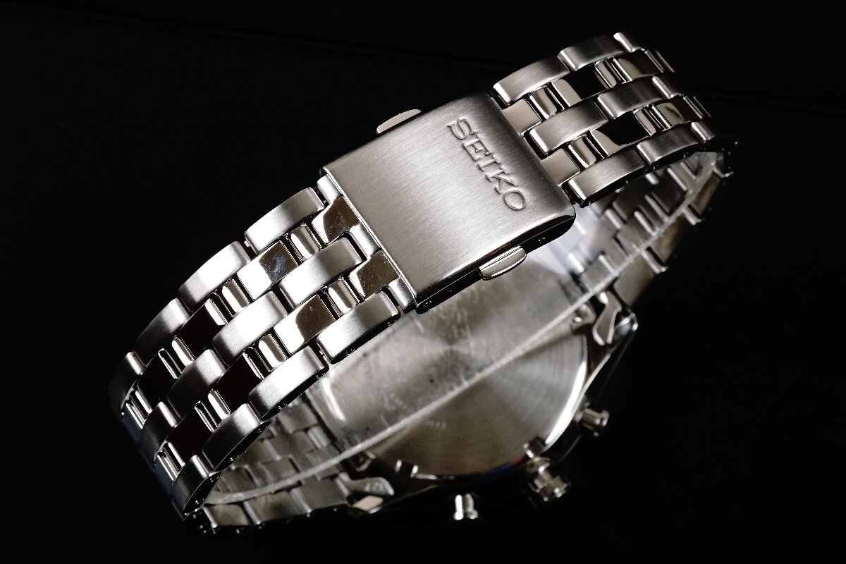 | 日本が世界に誇る時計ブランドSEIKO(セイコー)はブランドテーマに「革新と洗練」を掲げるリーディングカンパニー。 自社一貫生産による圧倒的な品質管理は、世界で高い評価を受けています。 展開するラインアップの中には、国内で生産・販売が終了していても、欧米を中心に根強い人気を誇り、海外市場向けのみに製造されているレアなモデルもあります。 高性能のセイコークロノに電池不要のソーラーバッテリー搭載モデルが登場! 正統派クロノグラフの定番デザインの逸品。 防水機能も100m防水に裏ぶたはスクリューバックを採用。 ソーラーシステム搭載のクロノグラフは希少レアモデルです。 商標名: セイコー バンド バンドカラー: シルバートーン バンド素材: ステンレススチール バンドタイプ: 腕輪 バンドフィニッシュ: ポリッシュ仕上げとブラッシュ仕上げ バンド幅: 21ミリメートル 留め金: プッシュボタン付きフォールドオーバークラスプ ケース ケース幅: 42ミリメートル ケースバック: ねじ込み式クローズ 結晶: ハードレックスクリスタル 終える: ポリッシュ仕上げとブラッシュ仕上げ ラグ付きのケースの長さ: 50ミリメートル 材料: ステンレススチール 形: 丸い 耐水性: 100 m (330 フィート) |