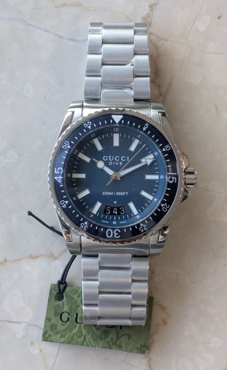 新品未使用 グッチ gucci ダイブ 紺 メンズ 腕時計 YA136203 45ミリ