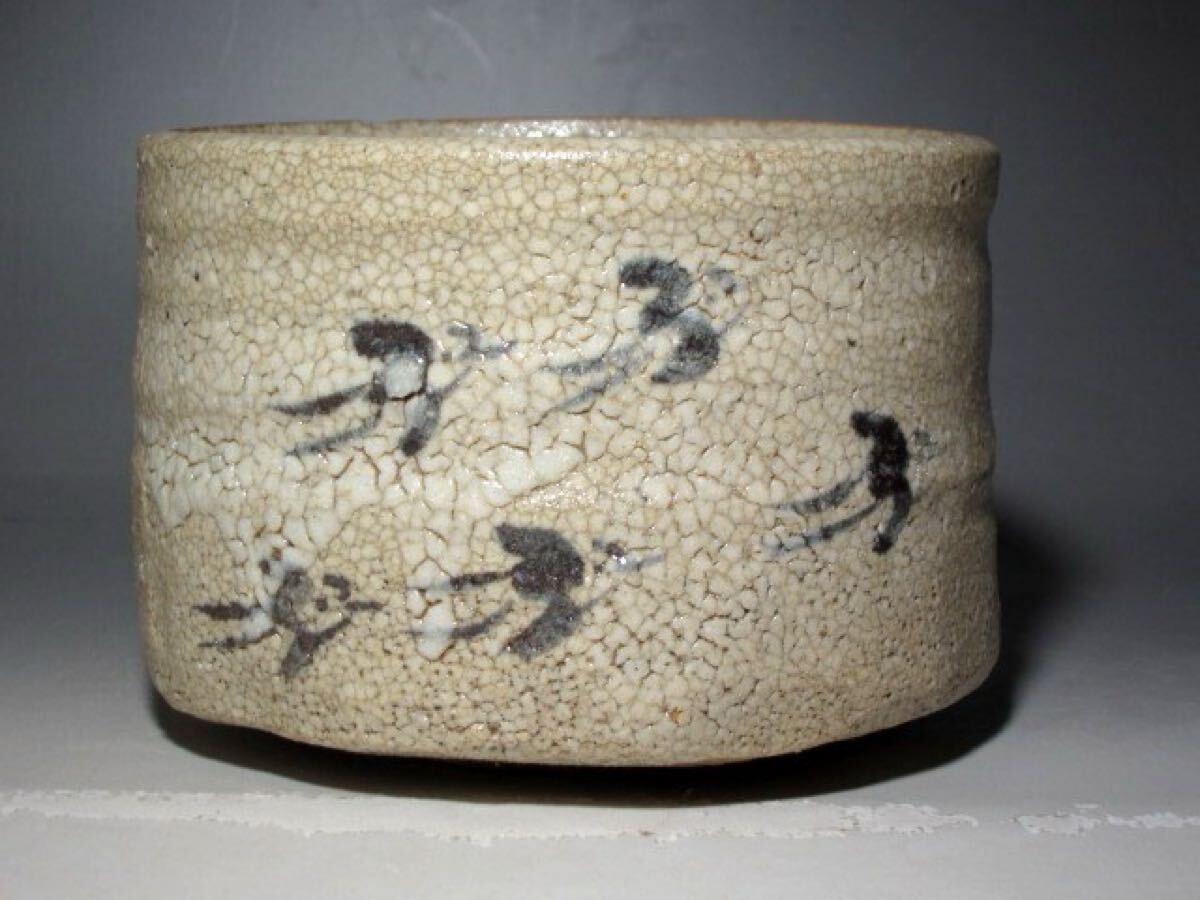 古志野茶碗「常盤」です。 時代を感じられる見事なお品です。 箱蓋裏に表千家十四代而妙斎の花押があります。 サイズ 直径12cm/高さ8.5cm(多少の誤差はお許しください) 状態 一見して疵やヒビ・直しは見られません。 骨董品という事をご勘案頂き、時代経過のスレや、小さな傷がある場合があるかもしれませんのでご承知置きください。 | |||
