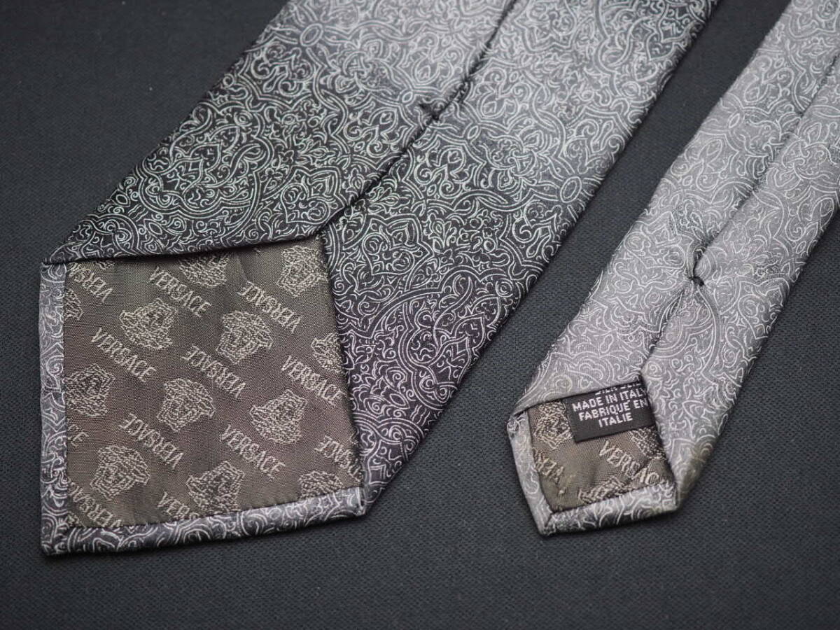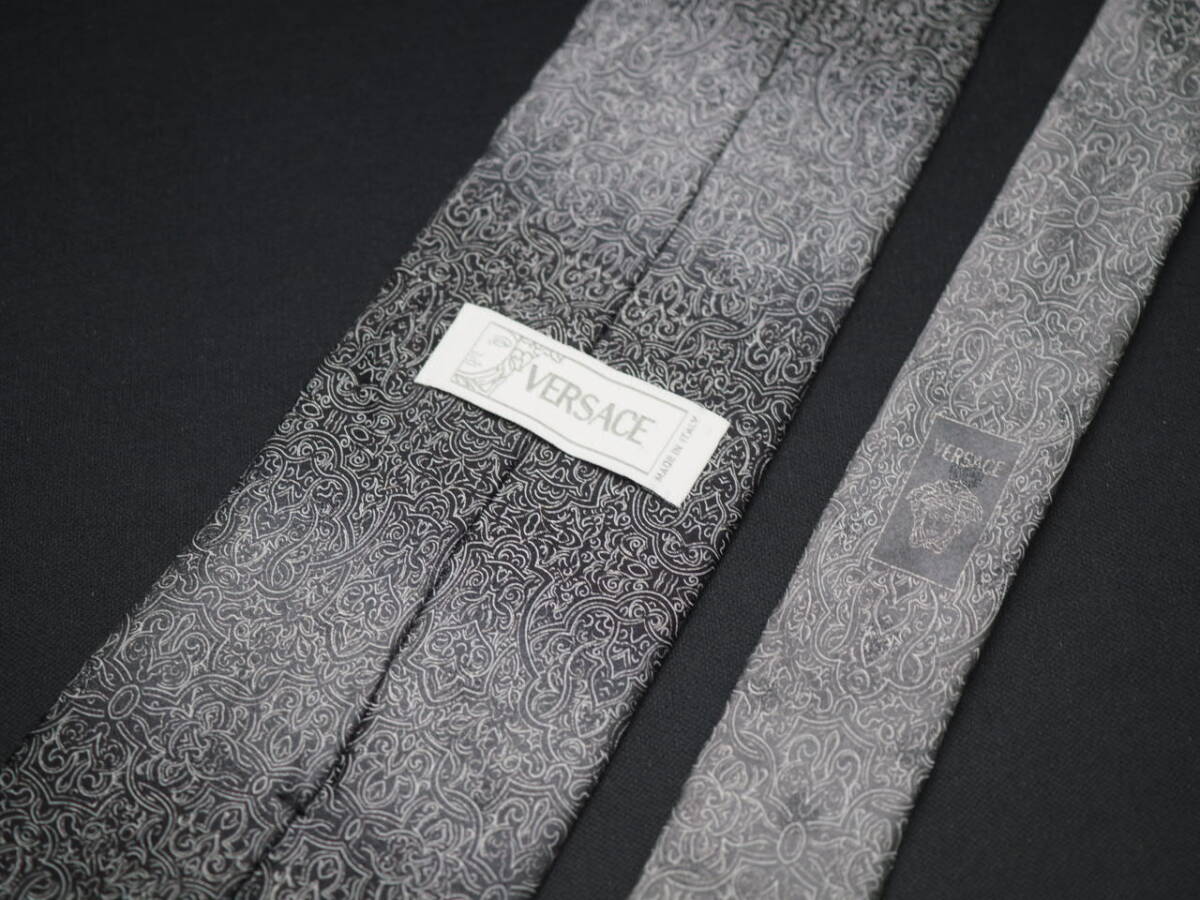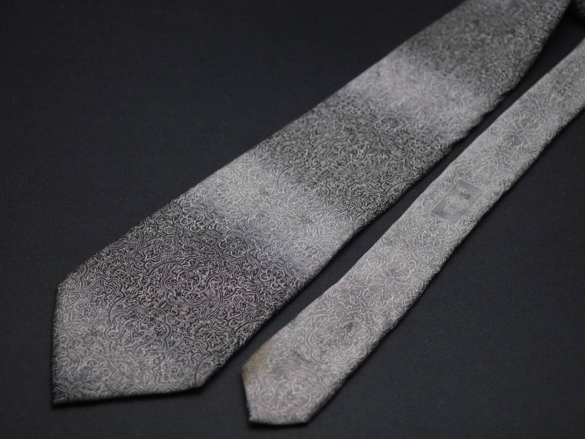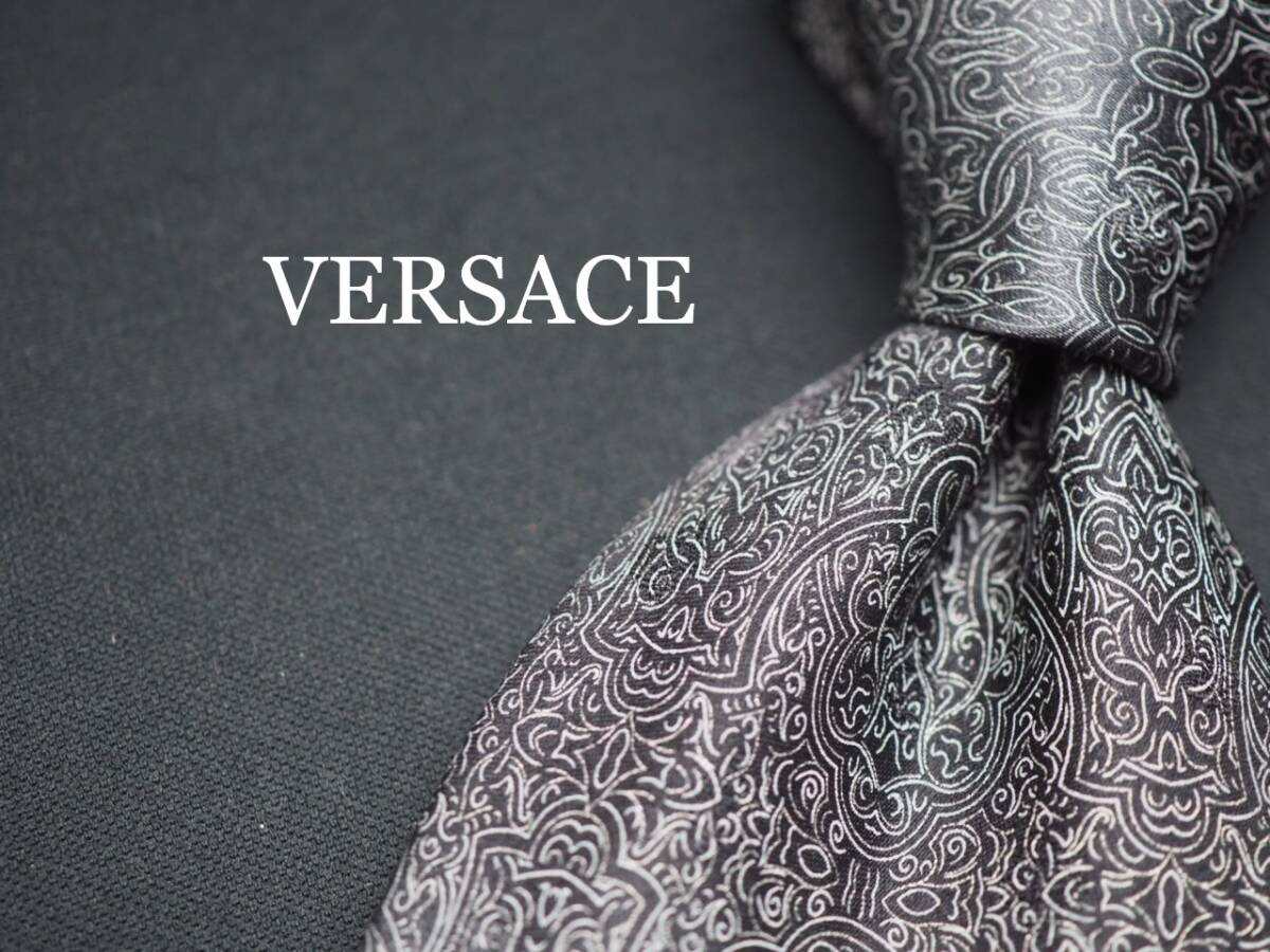 美品【VERSACE ヴェルサーチ】 F2124 ブラックグレー系 SILK ブランド ネクタイ 古着 良品 転売 仕入