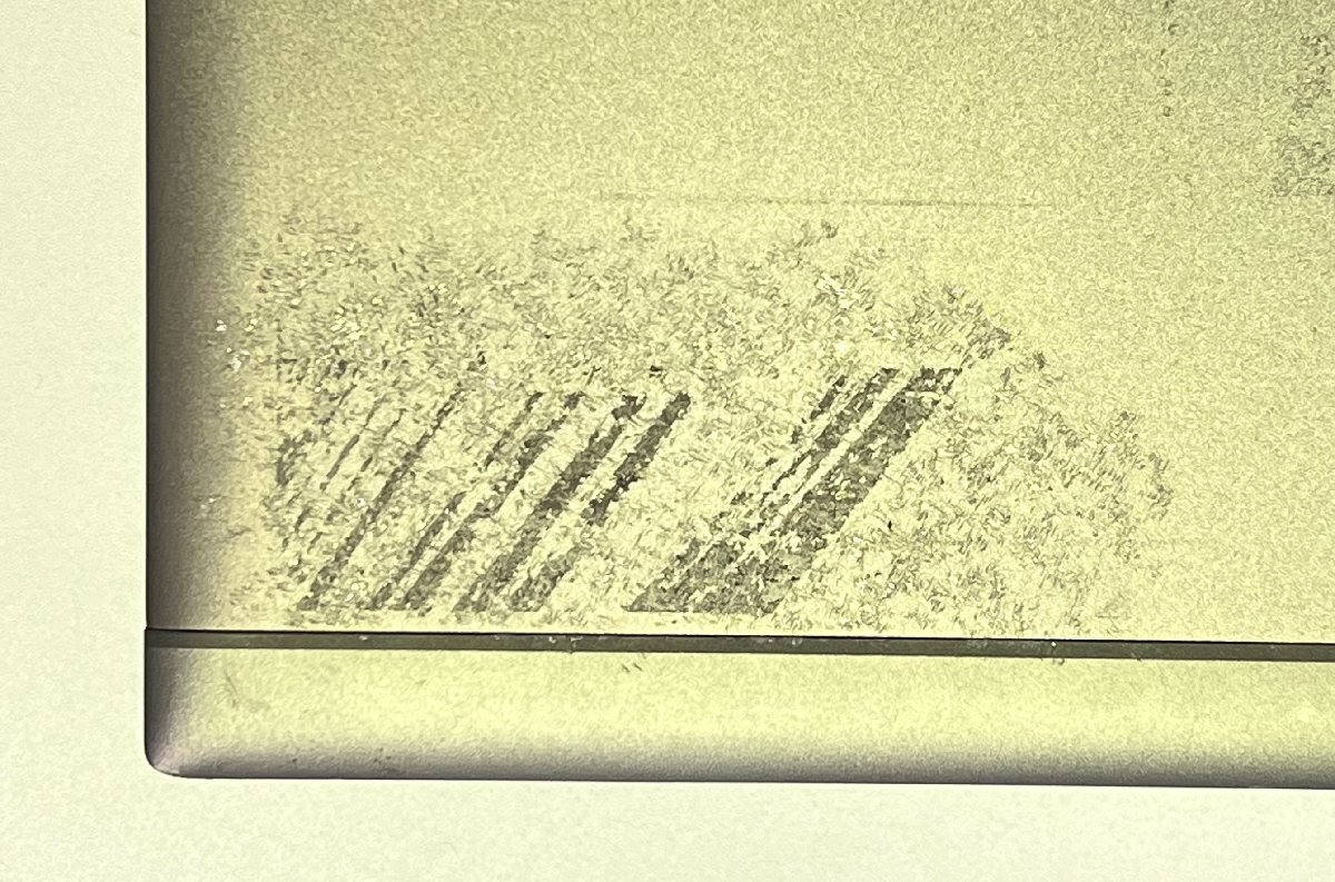 外観は画像の通り企業ロゴを削ったようでカバーとバームレストに多数の傷が見られます。