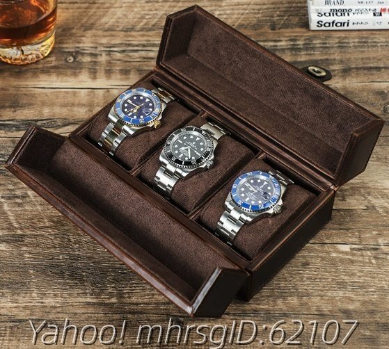 レトロ瘋狂馬皮時計箱3位方形アウトドア旅行可搬型マグネット留め金革時計収納箱