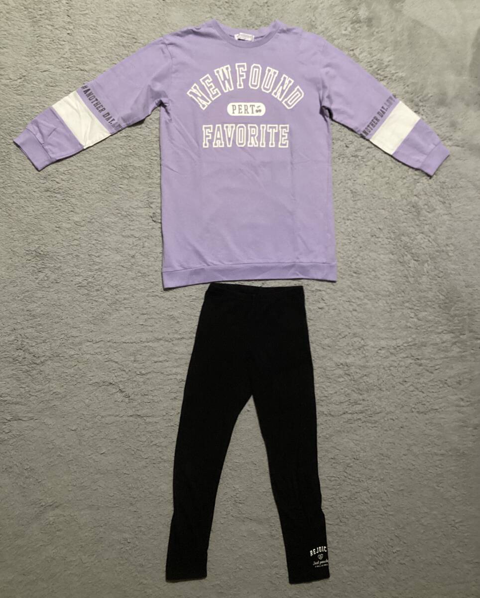長袖&スパッツ 部屋着 パジャマ 150センチ (パープル&ブラック)