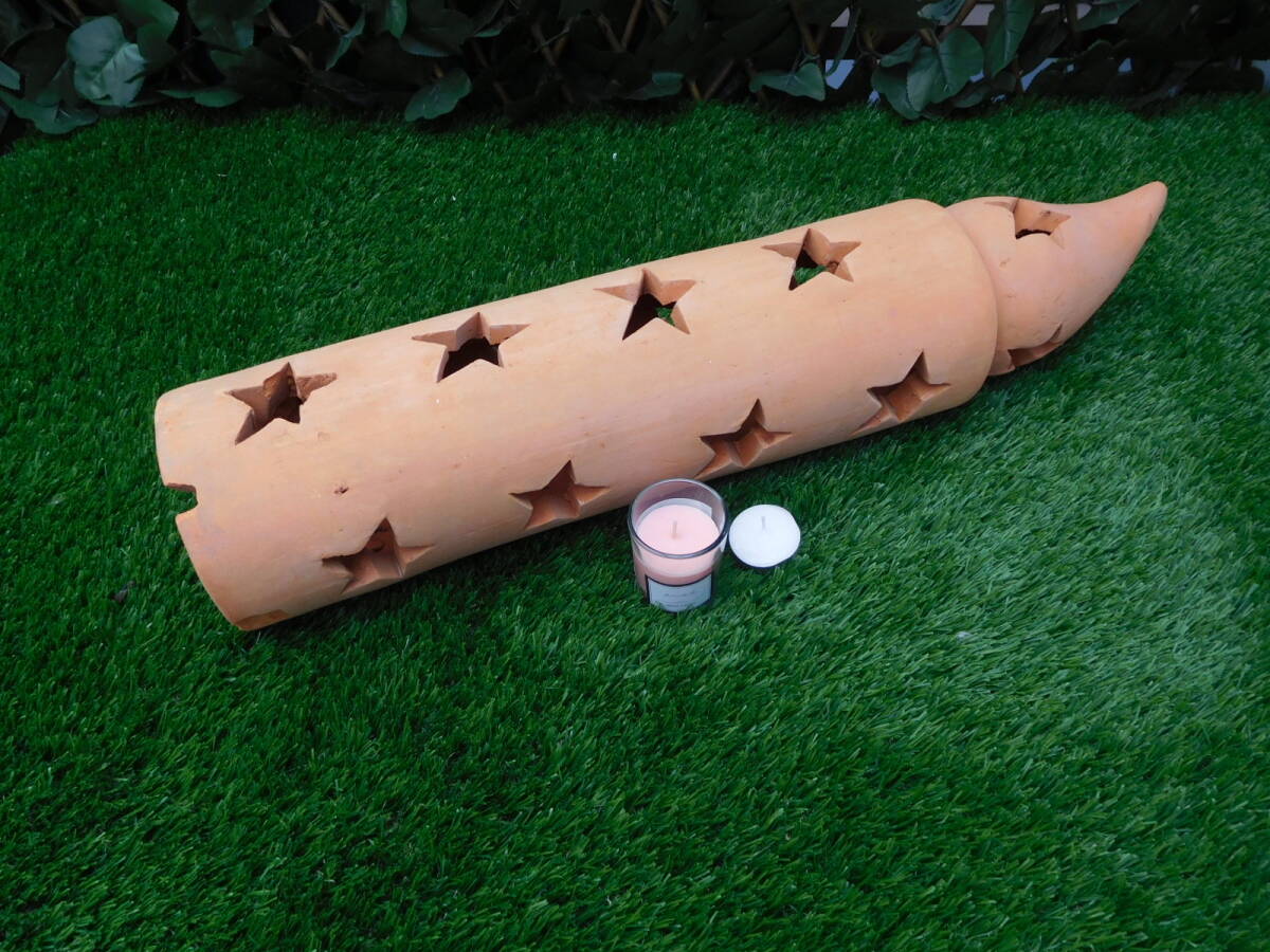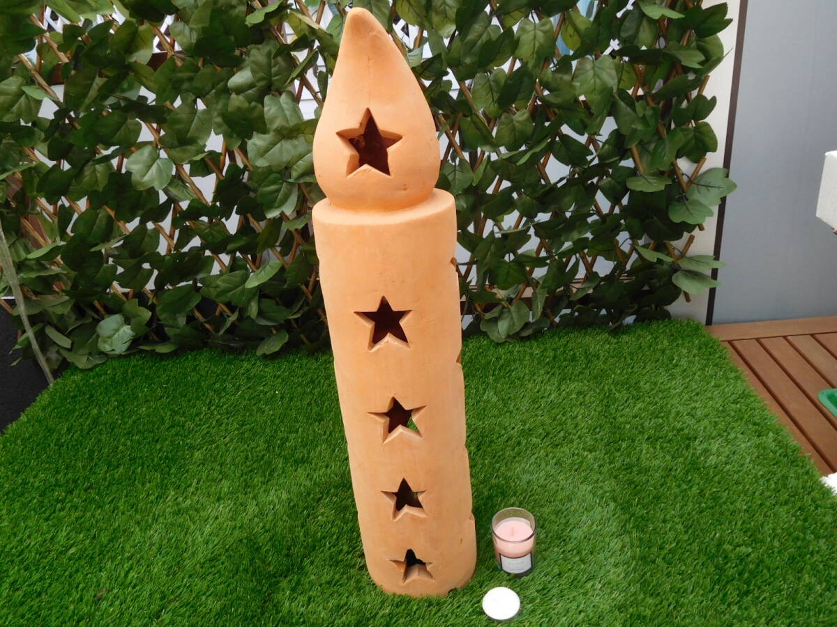 ローソク足 Xマスグッズ 焼き物 W13㎝xH60㎝ 部屋や庭の置物 ツリー飾り テラコッタ製 幻想的 キャンドル 格安特価
