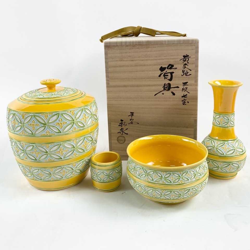 | 商品名 | 平安 勝見永泉 作 黄交趾 三段七宝 皆具 共箱 茶道具 水指 杓立 蓋置 建水 共箱,共布 茶道具 4072433 |