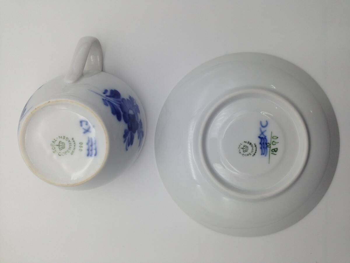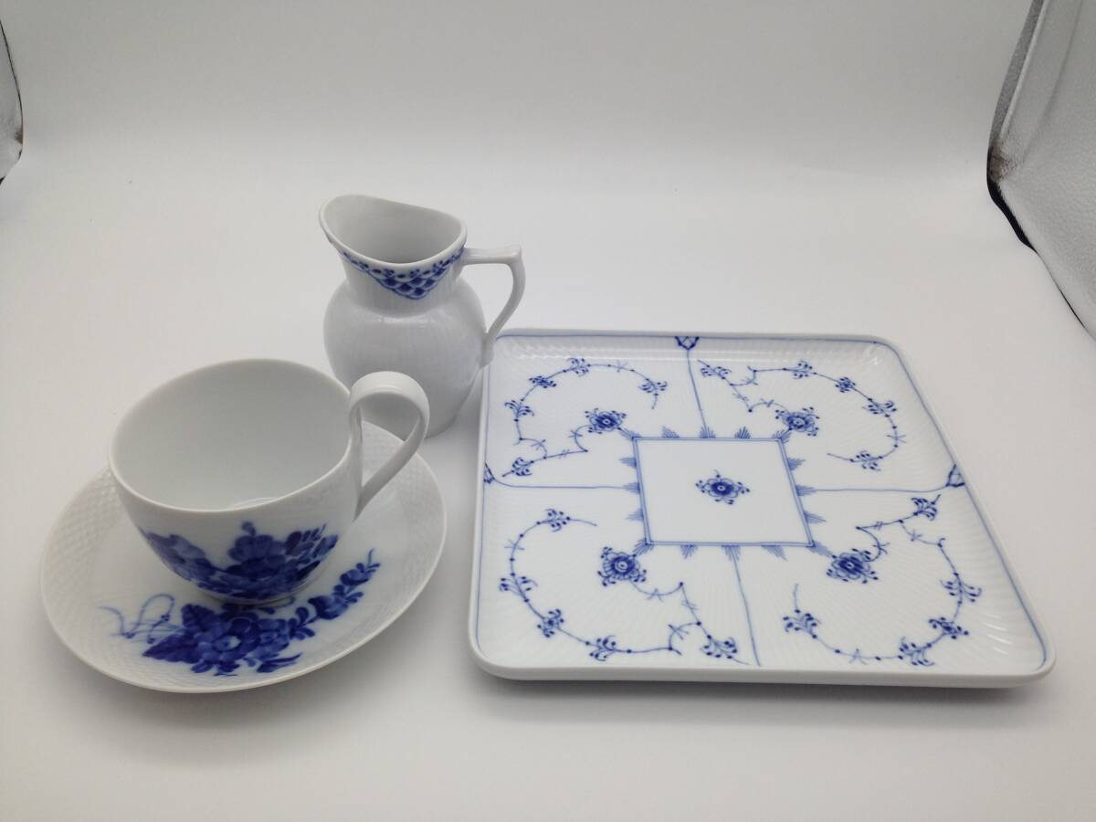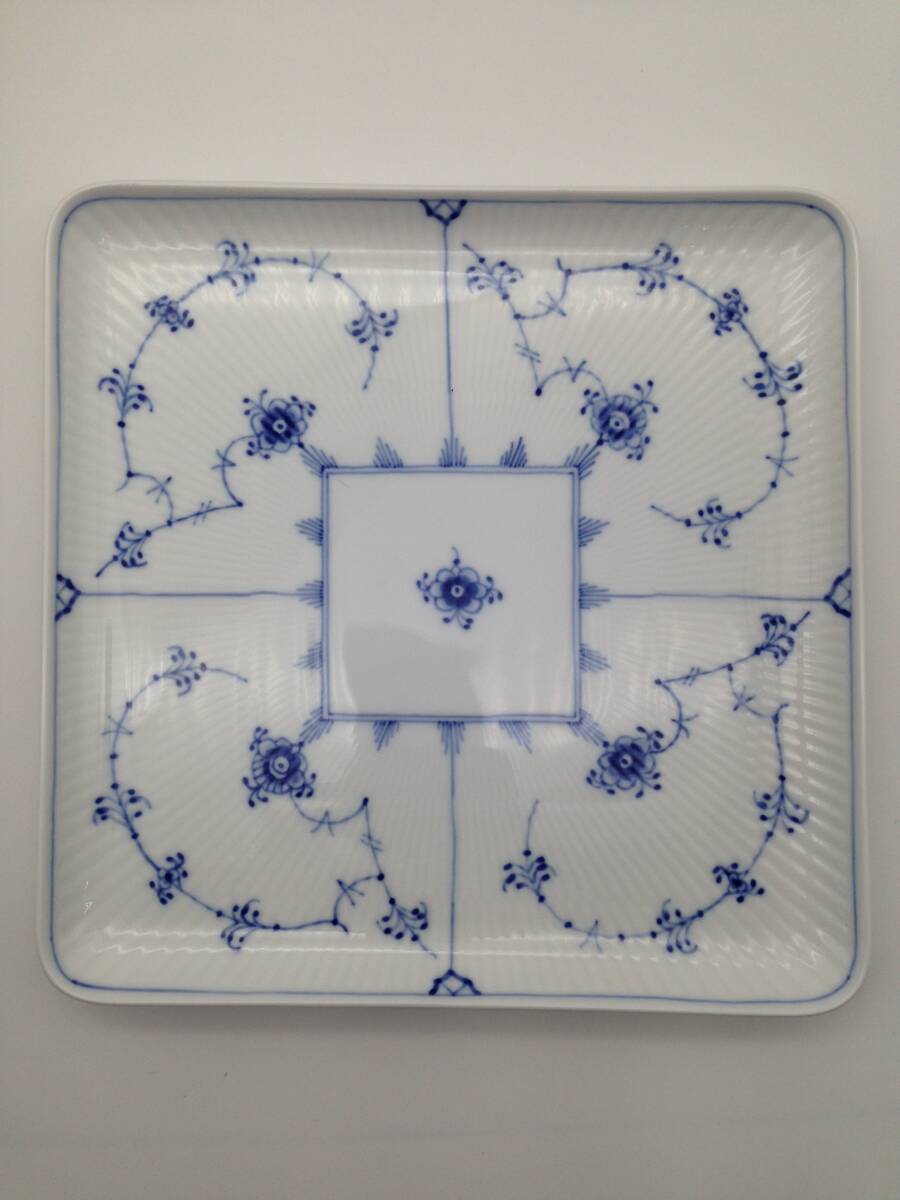 中古 ロイヤルコペンハーゲン ブルーフルーテッド スクエア プレート カップ&ソーサー ROYAL COPENHAGEN ハーフレース