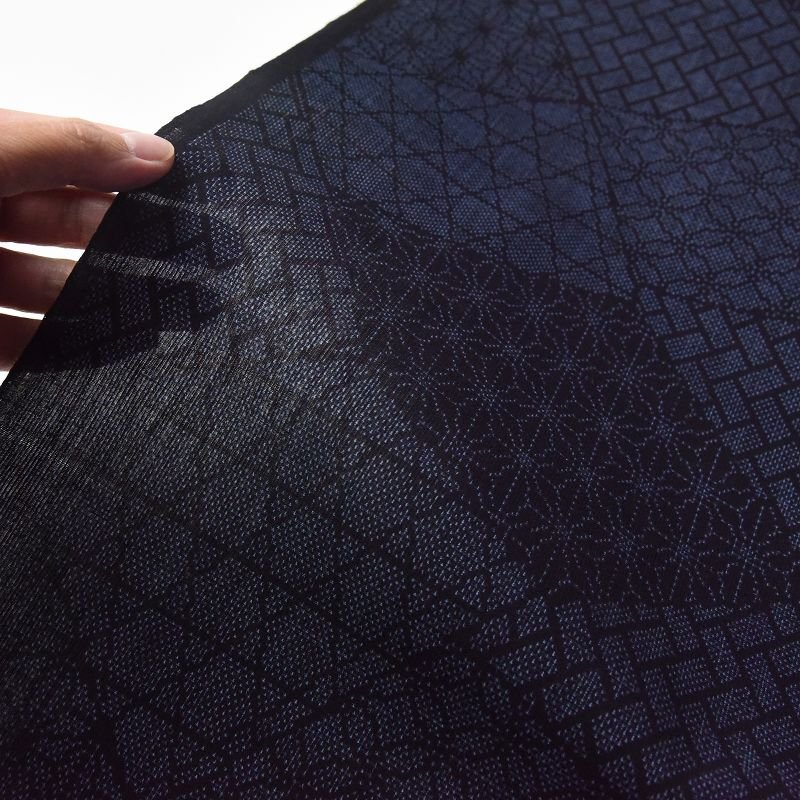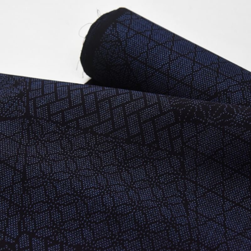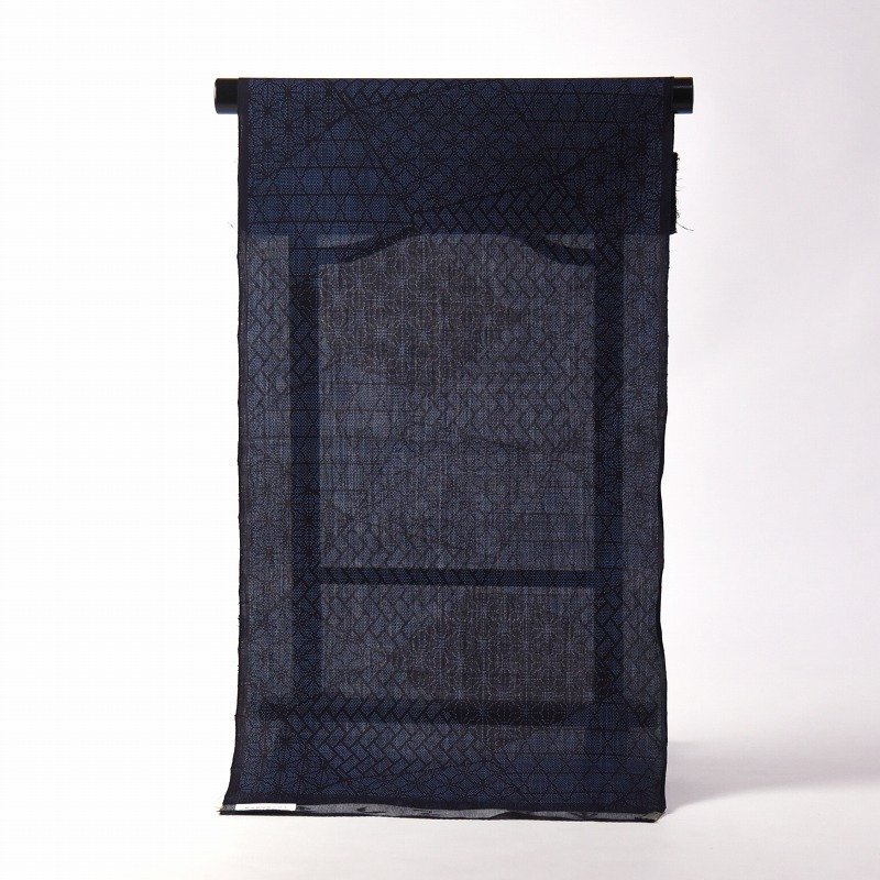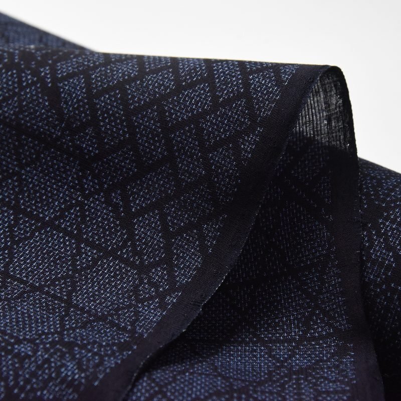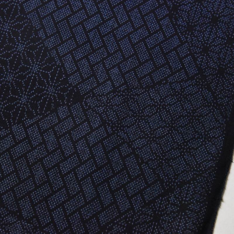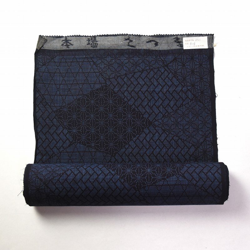 【ほりだし堂】 東郷織物 綿さつま 七マルキ 紺色 裂取りに幾何学模様 お洒落/カジュアル着物 反物