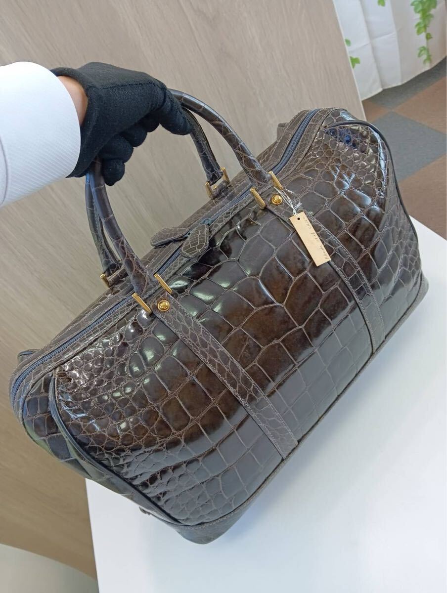 VALDIバルディ クロコ ボストンバッグ ハンドバッグ 黒ブラック 肩掛け 手提げ バッグかばん 現状品