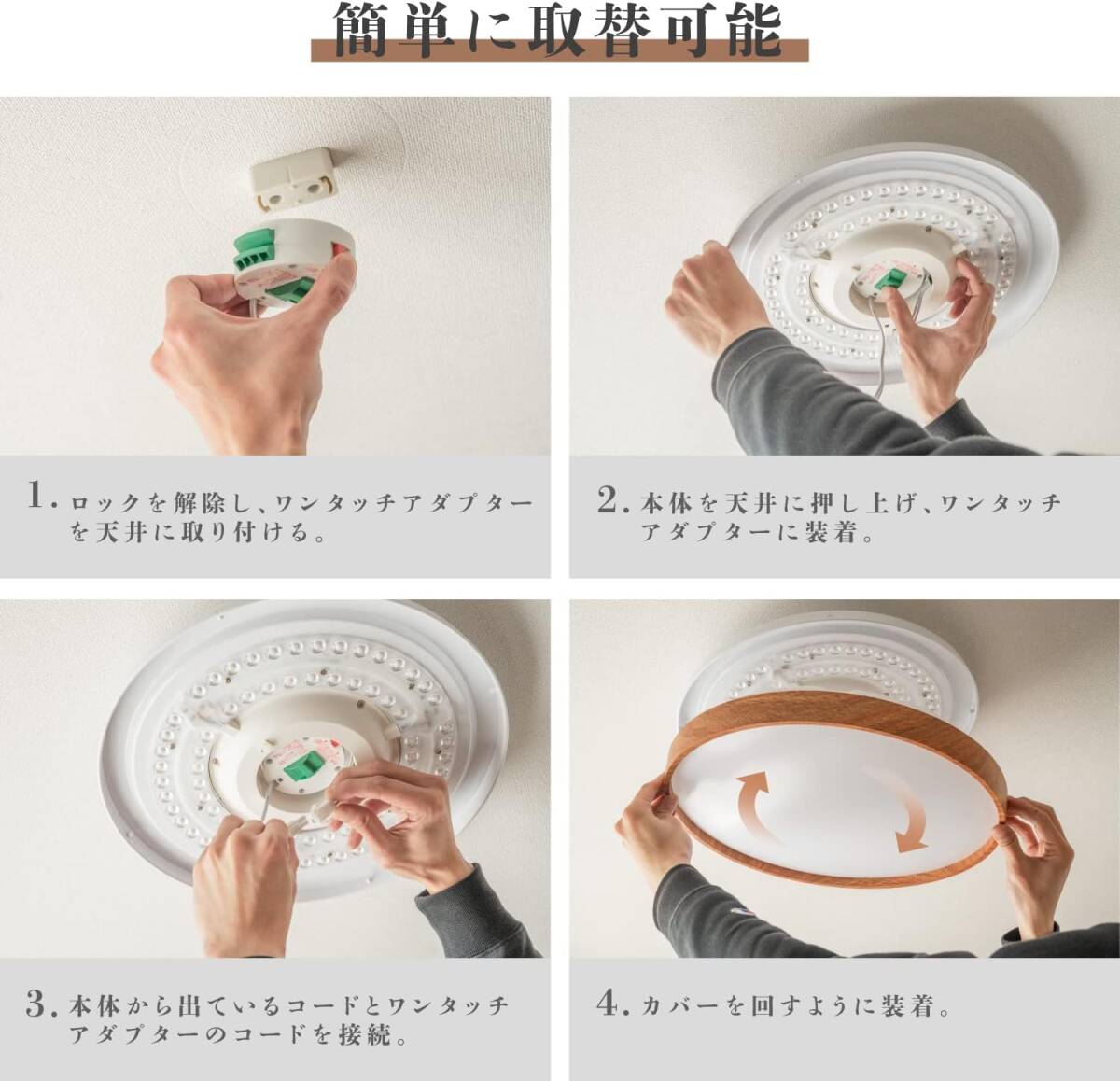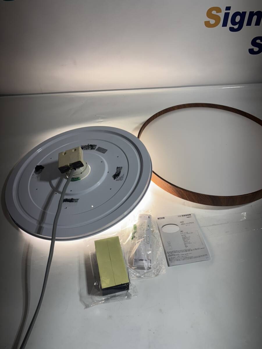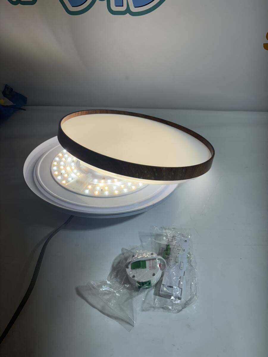 シーリングライトサイズ:Φ48xH8cm/ カラー:ブラウン/ 色温度:3000k-6000k/ 定格光束:5700lm/ 消費電力:48W/ 重量:1.6kg/ 付属品:シーリングライト×1 リモコン×1 アダプター×1