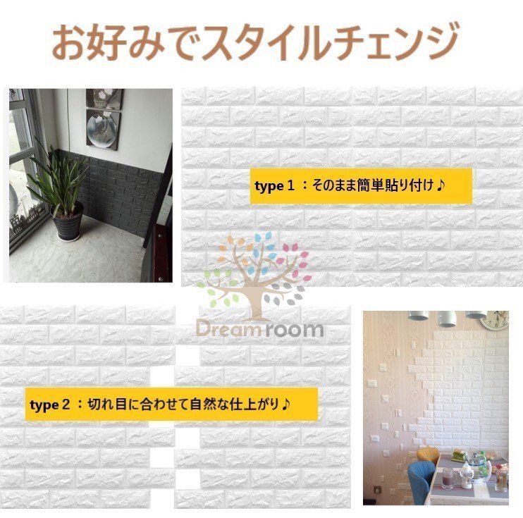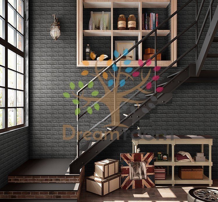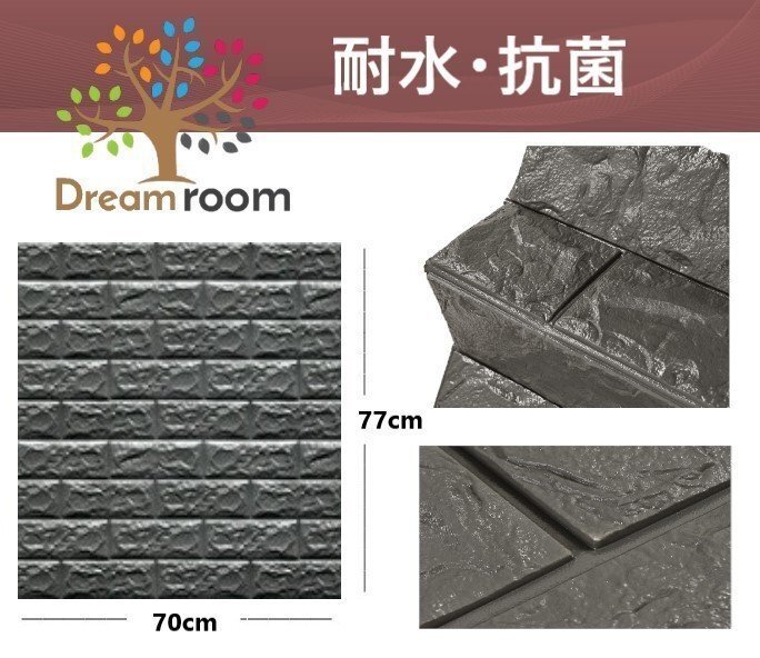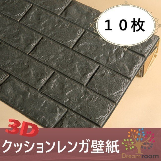 【10枚】高品質 3D クッション 壁紙シール ブラック/墨黒 レンガ調 糊付き はがせる クロス 70×77cm アンティーク 耐水 落書き 傷防止