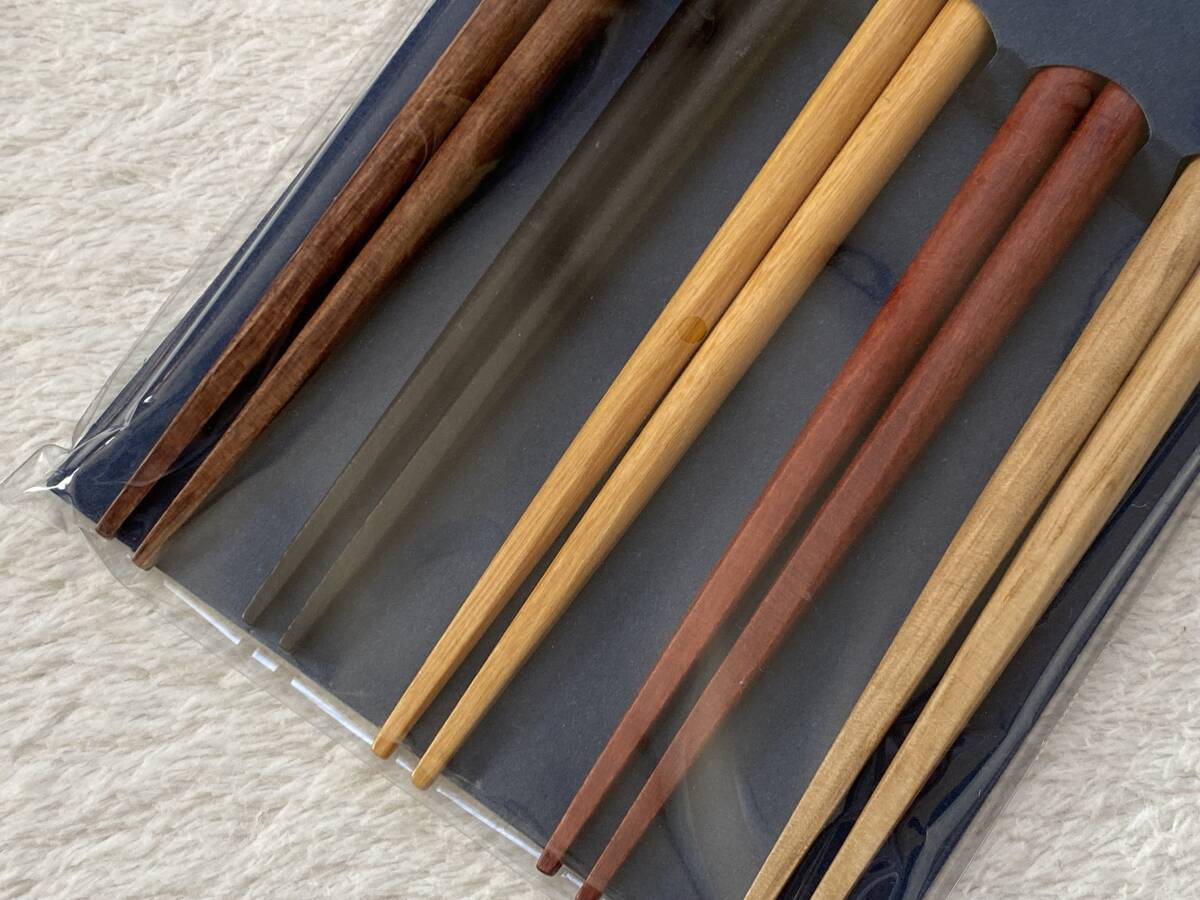 新品【天然木】 箸5膳 栗・紫壇仕上・黄楊・黒檀仕上・鉄刀木の 5種類の箸セット 持ち手部分には窪みがありますので 持ちやすいと思います 外箱なし(商品のみ)の発送とさせていただきます ご了承ください ★サイズ 全長:約22cm |
