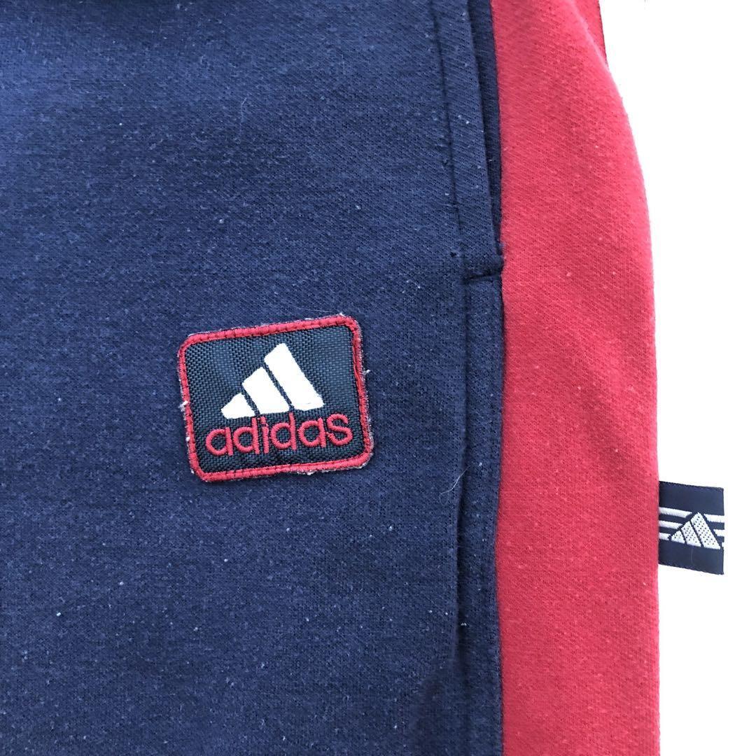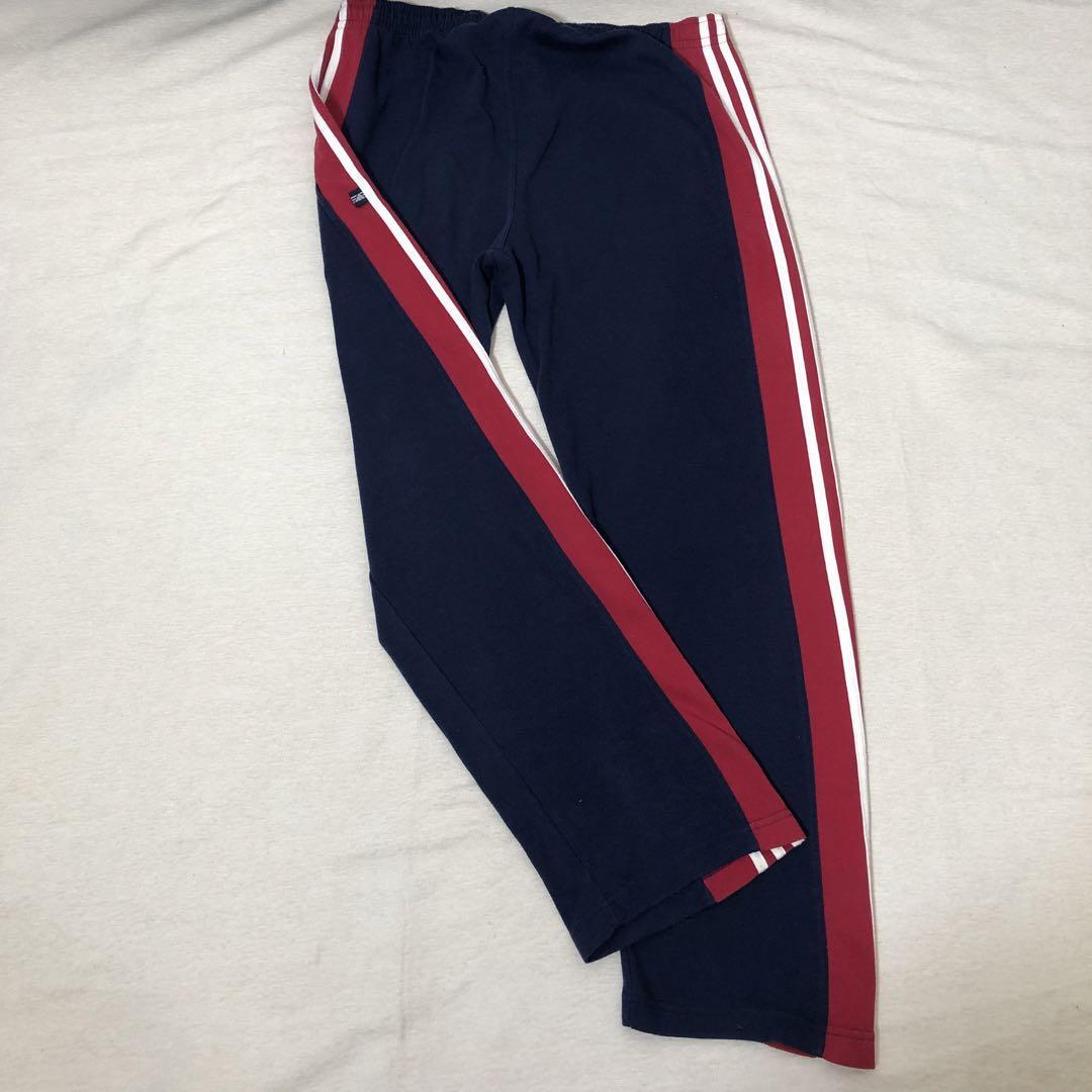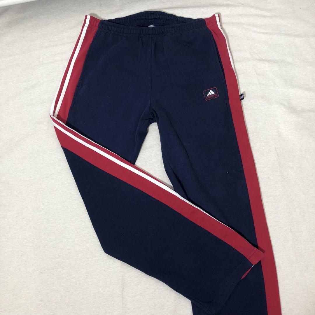 adidasのクラシックなデザインが特徴のスウェットパンツです。ネイビーを基調とし、レッドとホワイトのサイドラインがアクセントになっています。ウエストはゴム仕様で、リラックスした履き心地を提供。スポーツシーンやルームウェアとしても最適です